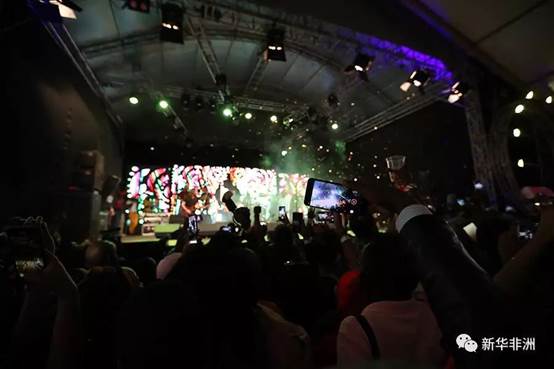 科特迪瓦著名男歌手阿尔法·布隆迪在台上表演。新华社记者 杨臻摄