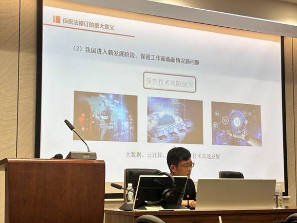 活动中,全体党员系统回顾了我国保密法治建设历史沿革,重点学习了《保密法》修订的背景意义和核心内容。通过“条文解读+情景模拟”的方式,与会党员深入研讨了涉外工作中的保密要求,特别是针对外语专业特点,结合《保密法》第三十七条规定,重点学习了对外交流合作中的保密注意事项。