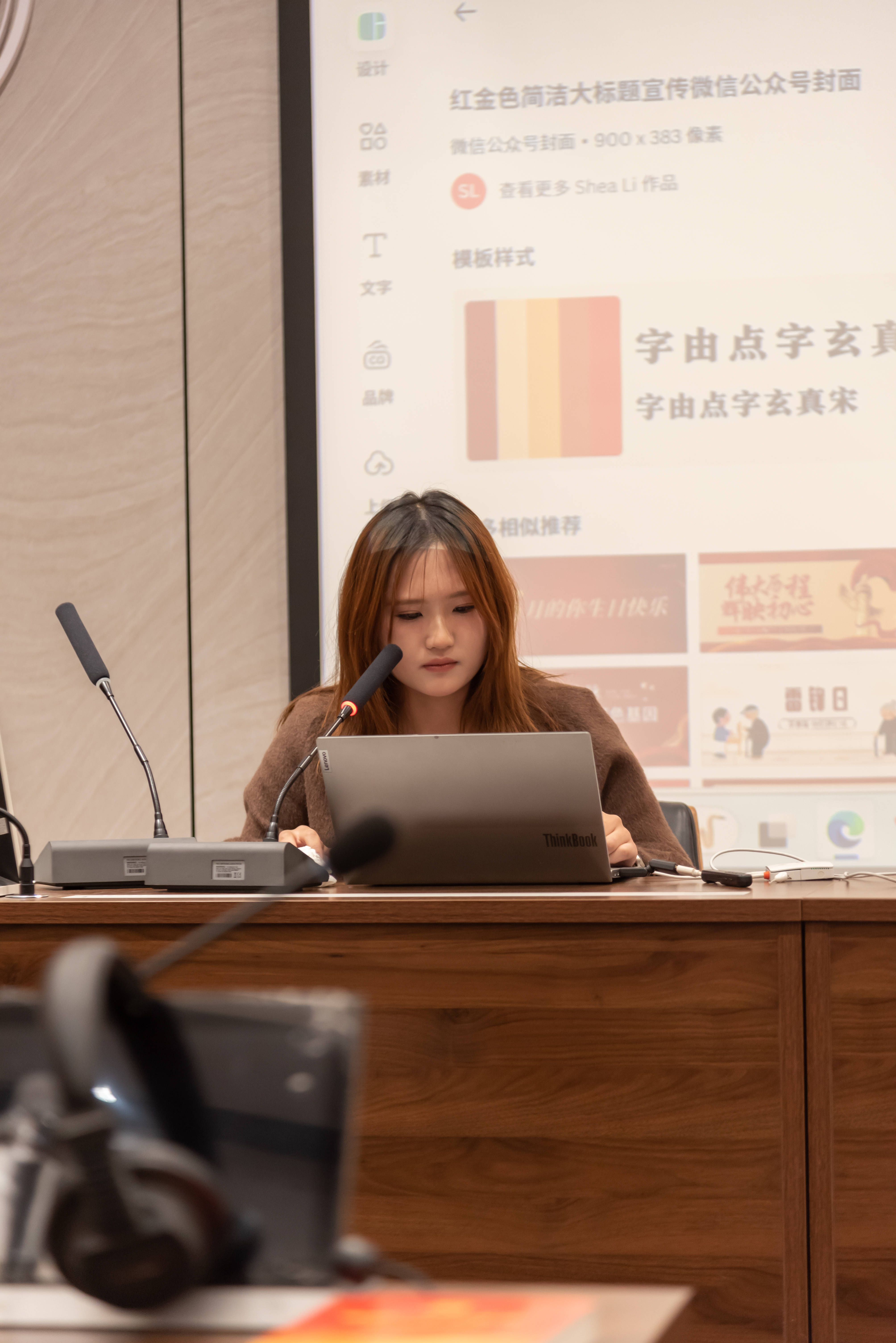 随后,进行新闻宣传中心第二届成员的培训工作。采编部记者组卞睿展从工作流程、新闻稿撰写要求、格式插图要求等方面进行培训,并结合实际例子展开讲解;摄影组崔默菡从工作任务、拍摄要求、注意事项、相机使用四部分介绍摄影工作,以帮助新干事更好地开展工作。编辑部微信组刘昱彤现场演示编辑微信公众号的完整流程,其中包括135编辑器的基本操作以及封面制作的方法;官网组赵亚琳对官网编辑流程及其注意事项进行讲解。
