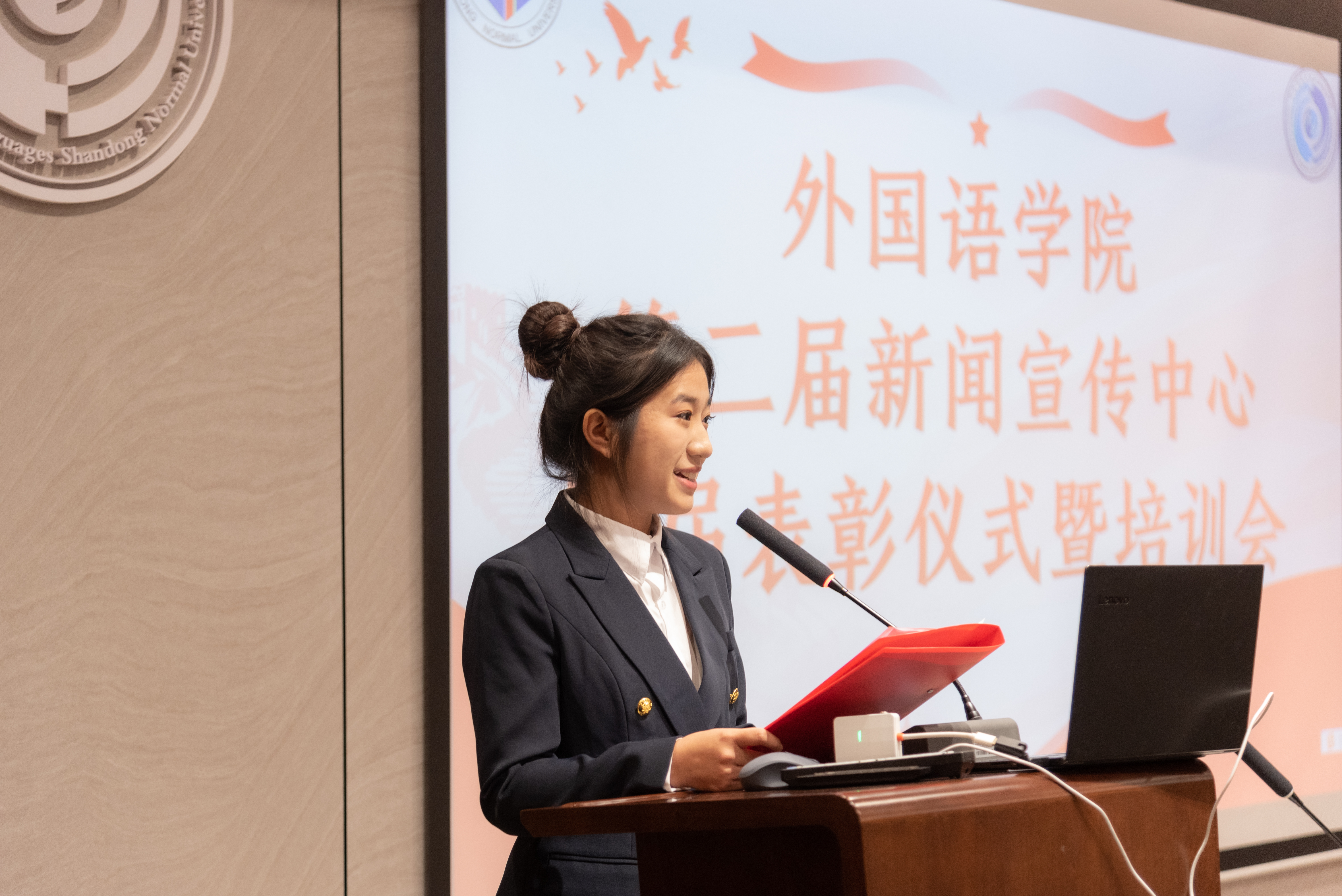 大会进行第一项,陶业涛发表致辞。他首先对新闻宣传中心第一届成员的辛勤付出与倾心奉献表示感谢,肯定了他们在工作过程中展现出的开拓精神,使英国正版365首页宣传工作实现新突破并给予他们高度评价。其次,陶书记向第二届成员表示祝贺,并指出学院工作既要做事情也要宣传好,同时,向第二届成员提出三点要求:提高政治站位、强化责任担当;提升专业技能、扎实开展工作;大胆创新工作、争创优异佳绩。最后陶业涛对新闻宣传中心工作提出展望与期许,希望新闻宣传中心成员们能够更好塑造外院形象、展现外院风采。