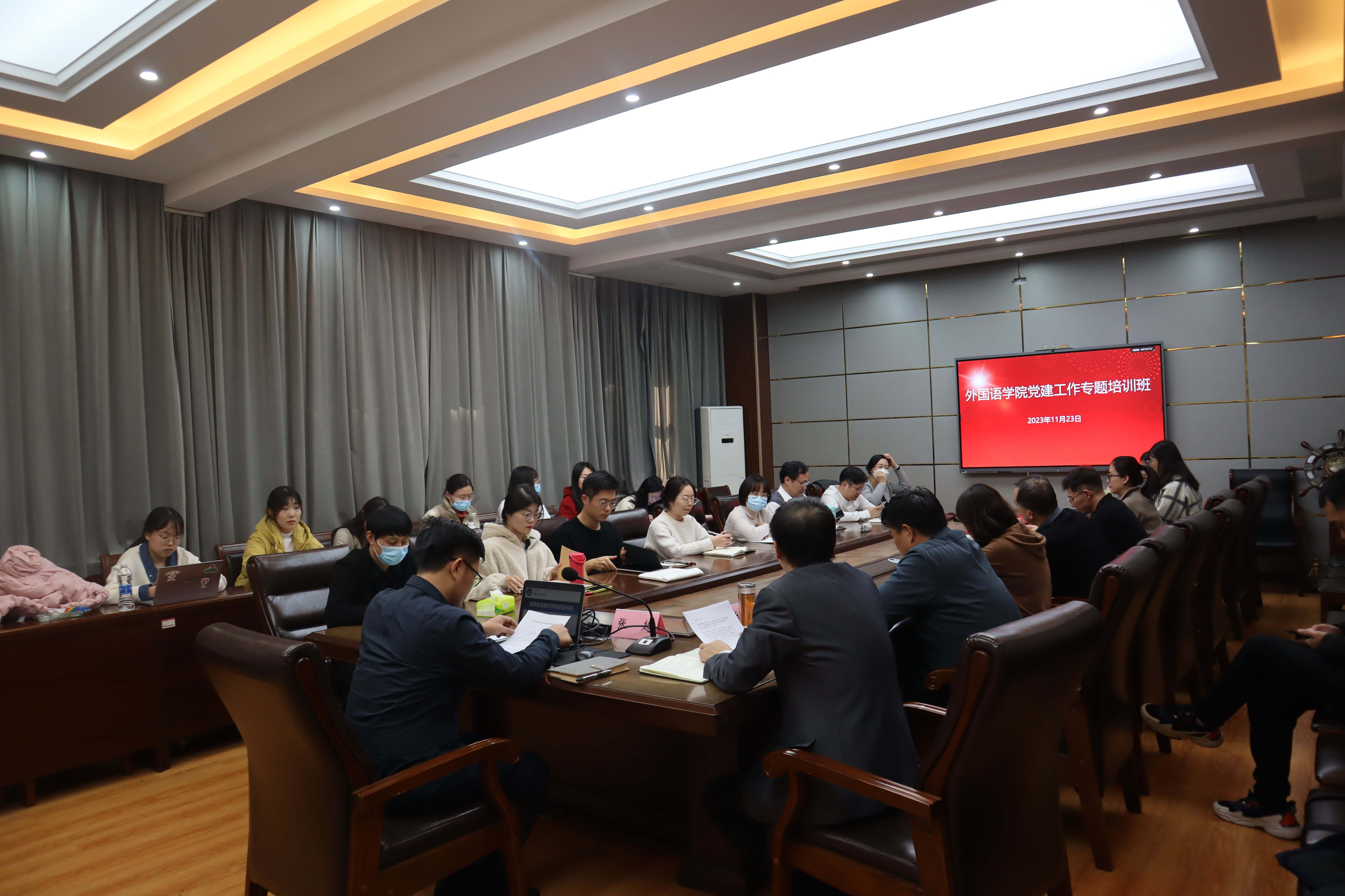 2023年11月23日下午,英国正版365首页党委举办教工党建工作经验介绍会,本次经验介绍会是学院党建工作专题培训班的内容之一。介绍会由首批“全国党建工作样板支部”物理与电子科学学院教工第二党支部书记张超教授担任主讲人,英国正版365首页党委书记岳希亮主持,英国正版365首页党委委员,党支部书记、委员,全体辅导员及党员科室主任等参加了本次会议。