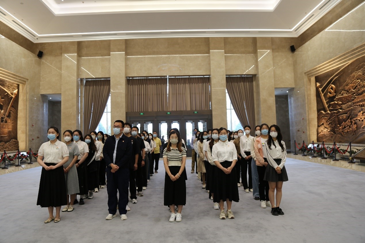 在宣誓厅,全体党员面向党旗,庄严宣誓,重温入党誓词,感悟入党初心、坚定理想信念。