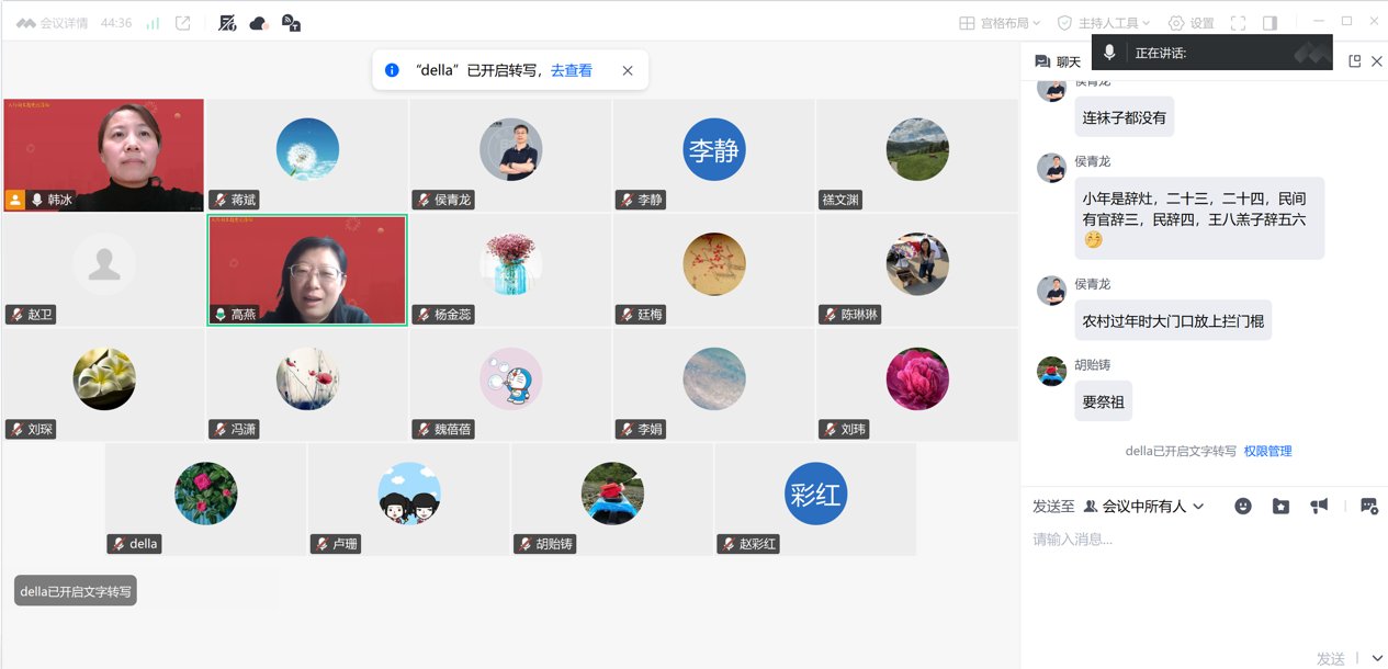 韩冰书记总结发言,她进一步指出,传统习俗是文化传承的重要载体。她建议老师们利用春节契机,带领家人体验各地仍保留的民俗活动,如高跷、花灯、庙会等,在亲身参与中激活文化记忆。同时,她引用《理解当代中国大学英语综合教程2》第一单元中关于春节现代化演变的文章,指出春节形式的变迁折射出中国社会的发展轨迹,但人们对团圆、祥和、国泰民安的美好向往始终未变。她强调,家风建设不仅关乎家庭和睦,更关系到民风社风,是文化自信的根基。家风正则民风淳,民风淳则国运兴。作为高校外语教育工作者,既要立足教学本职,做好文化传播与语言沟通的桥梁,也要在家庭与社会中自觉践行、传承优良家风,将个人修养、家庭建设与国家发展紧密结合。她向全体党员致以新春祝福,希望大家在享受团圆时光的同时,不忘党员使命,以实际行动弘扬传统文化,践行家国担当。
