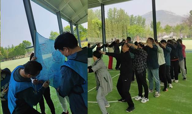 上午9:00,学院教职工一行30多人顺利抵达山青世界训练基地。教职工被分为三个团队,在进行了各队队旗、队名、口号风采展示之后,分组开始了上午的素质拓展。