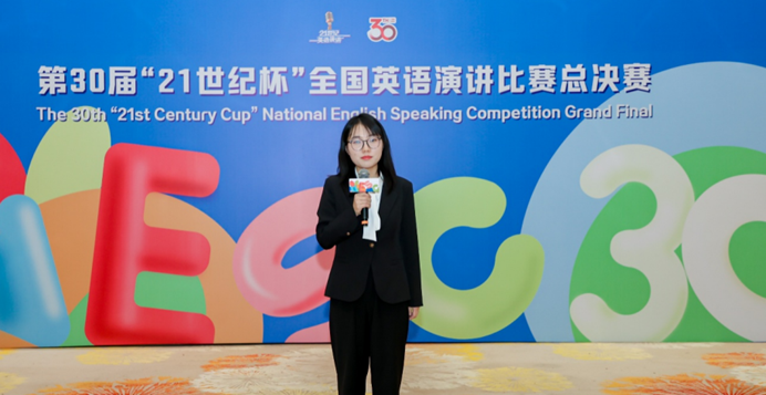 “21世纪杯”全国英语演讲比赛由中国日报社创办于 1996 年,以“让世界倾听你的声音”为口号,每年吸引千余所高校数十万学生参与,始终致力于培养优秀学子的国际传播能力,搭建文明交流互鉴 的优质平台。此次赛事设置半决赛第1轮、半决赛第2轮及总决赛三个环节,全方位考验选手的英语表达能力、临场应变能力与深度思辨能力。