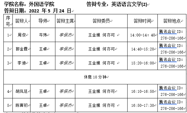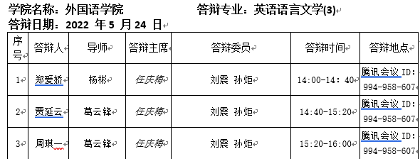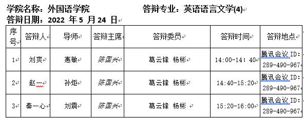 2022.5.24英国正版365首页2022届英语语言文学专业硕士研究生答辩公告
