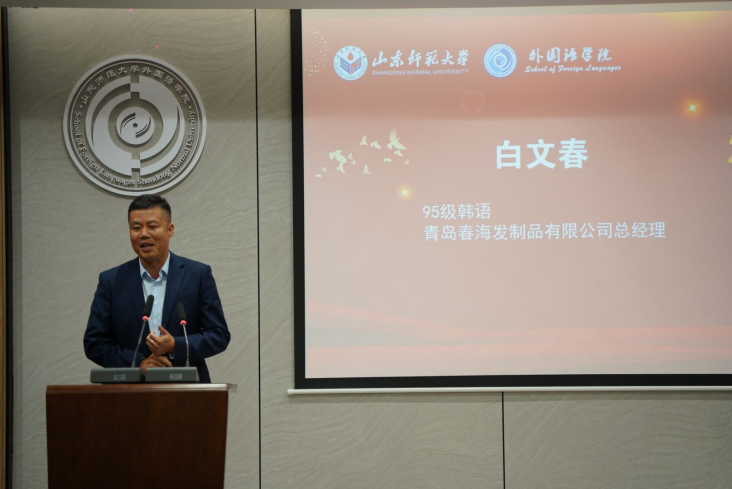 在校友论坛环节,78级日语专业校友、华兴报社社长、原365(vip)英国上市北美校友会会长、英国正版365首页校友理事会名誉会长程汝钊,74级英语专业校友、原中国驻津巴布韦使领馆参赞、学校北美校友特别顾问郭法欣,87级日语专业校友、绮丽集团有限责任公司总经理张世杰,90级英语专业校友、威海洪太极家具广场董事长、新西兰中华武术总会会长、英国正版365首页校友理事会常务理事洪卫国,95级韩语专业校友、青岛春海发制品有限公司总经理白文春,95级韩语专业校友、青岛泰通源国际贸易有限公司董事长郭参,01级英语专业校友、鄄城鼎顺发制品有限公司董事长、英国正版365首页校友理事会常务理事韩爱民,02级英语专业校友、济南长清大学城管委会投资促进部主任王桂金分别发言。