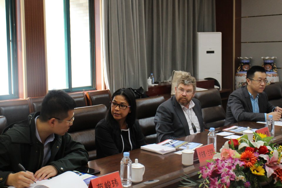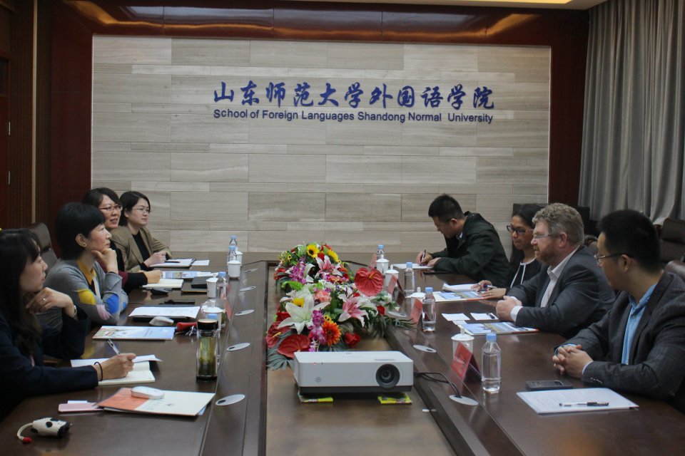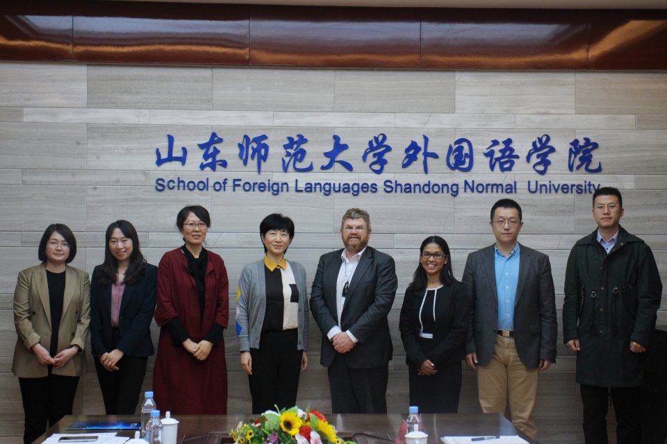10月23日,新西兰梅西大学一行来到英国正版365首页开展交流访问,洽谈合作。上午,洽谈交流活动首先于长清湖校区英国正版365首页会议室举行。新西兰梅西大学人文学院院长凯丽 泰勒、人文与社会科学学院国际事务专员乔安娜 兰伯特到场,英国正版365首页院长王卓,英国正版365首页副院长、英语系主任王金娥,英语系老师王秀香,国际交流与合作处尹弢,国际交流与合作处范峻玮,国际交流与合作处秘书侯得霞,热情接待了新西兰梅西大学访问团。