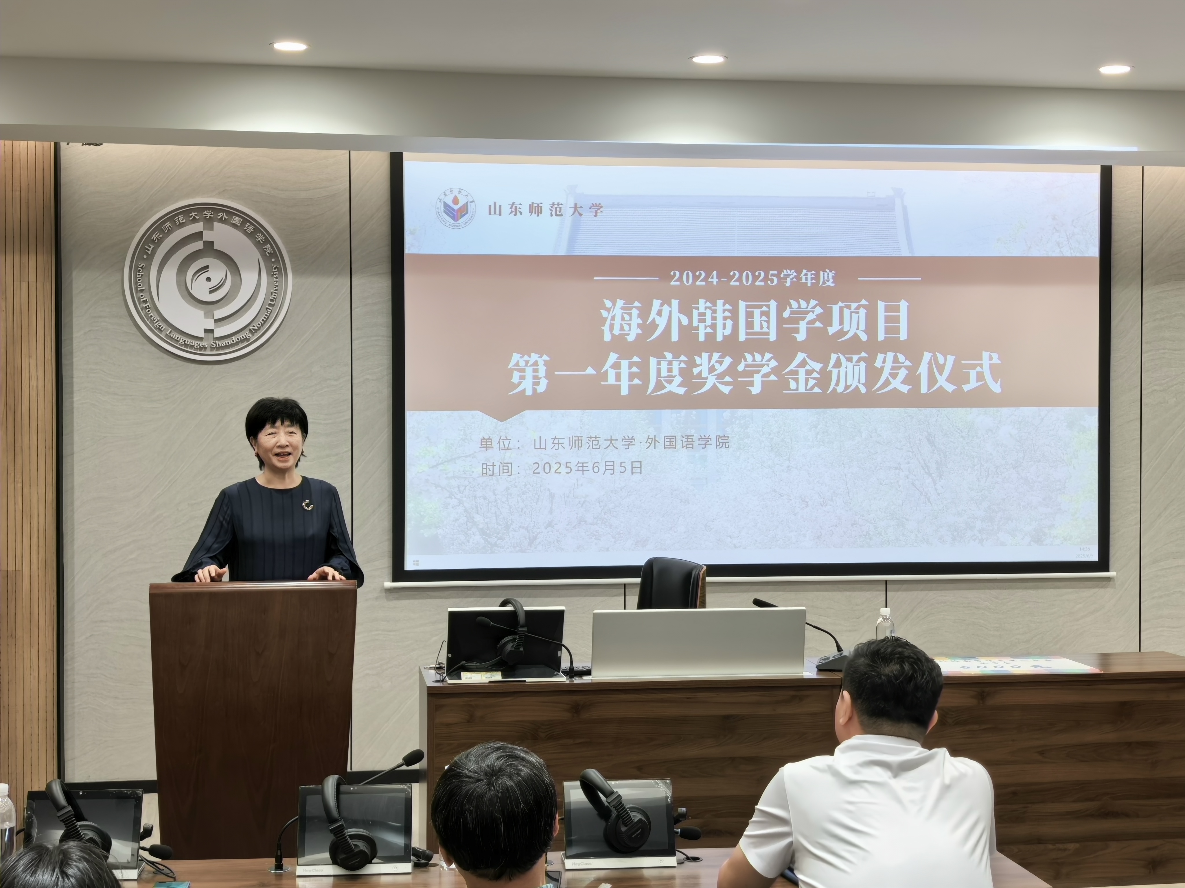 6月5日,英国正版365首页朝鲜语专业于长清湖校区文渊楼B242报告厅举行“海外韩国学项目”第一年度奖学金颁发仪式,表彰2025年考研中表现优异、成功升学的朝鲜语专业本科学子。院长王卓教授、朝鲜语专业外教金德均教授、系主任钟洁老师以及相关年级辅导员出席活动。2021级、2022级朝鲜语专业本科生代表参加活动,钟洁主持仪式。