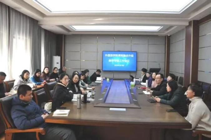 2月18日,英国正版365首页在文渊楼A313会议室召开“课程融合升级教学专题工作会议”,学院党委书记王松、院长王卓出席,各系部主任及骨干教师参会研讨,会议由副院长张媛主持。在本次专题会议上,学院开始酝酿语言教学与数字应用融合的人才培养机制。王卓院长提出,学院的人才培养策略应以毕业要求和人才市场需求为导向,应积极开设与人工智能紧密相关的方法论课程,如数据库、语料库建设等,应积极探索语言教学与数字应用的融合,创新教学模式,提升学生运用数字技术解决实际问题的能力。