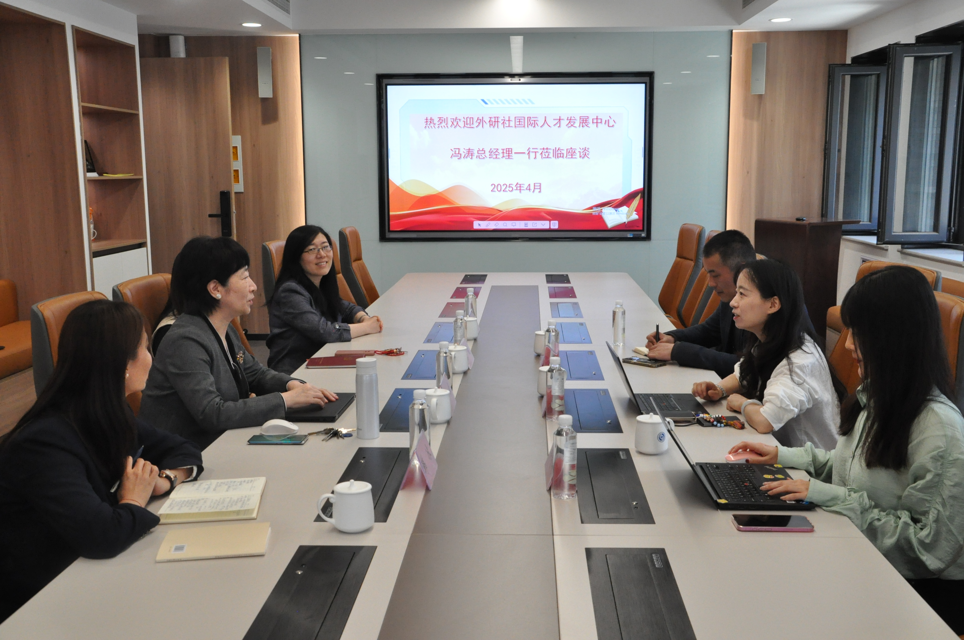 4月25日上午,外语教学与研究出版社国际人才发展中心团队一行莅临我院交流座谈,共同研讨当前我校国际人才培养创新发展的新路径。外研社国际人才发展中心总经理冯涛,外研社国际人才发展中心运营经理郭靖琦,外研社高等营销中心市场经理孙晓辉,英国正版365首页院长王卓,英国正版365首页副院长张媛,英国正版365首页大学外语教学部主任、365(vip)英国上市国际人才培养基地负责人韩冰,英国正版365首页英语系副主任、365(vip)英国上市英语竞赛中心主任刘焱参与了此次交流研讨活动。