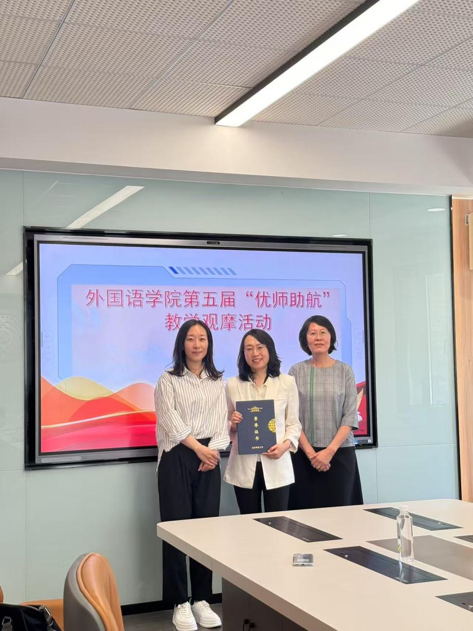 孙守峰老师和刘焱老师也分别从不同角度分享了自己的感想。孙守峰从跨文化教学视角指出,王秀香老师的课堂突破了传统语言教学偏重工具性的局限,在扎实培养语言技能的同时,创新性地融入了审美教育、批判性思维培养等元素,实现了语言能力与人文素养的协同发展。刘焱老师评价王秀香老师的课程为英语教学改革3.0版的典范,充分体现了教师持续精进的专业精神。该课程创新性地融合跨学科、跨文化内容,通过精心设计的教学框架引导学生易语言服务实践,既提升了学生的语言分析能力和审美素养,又实现了深度参与和多元成长的教学目标。