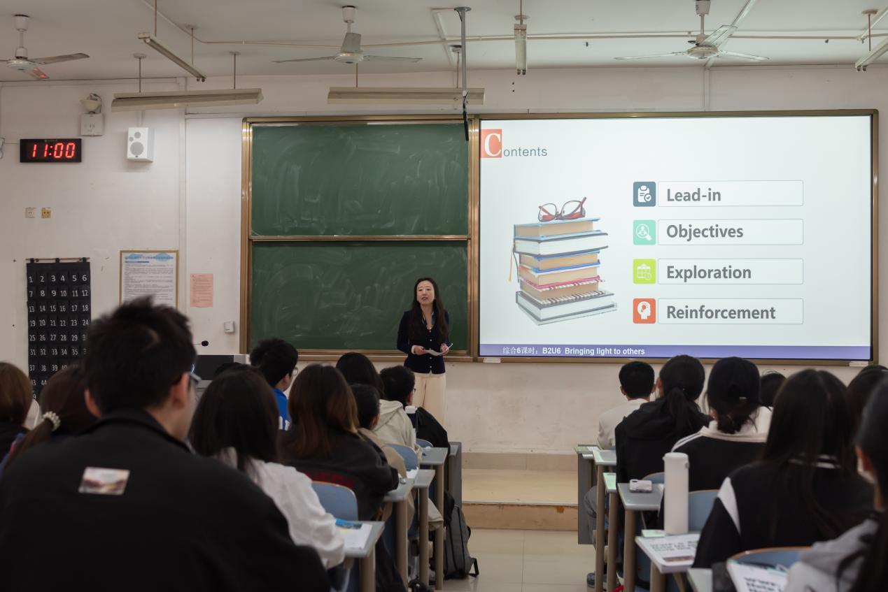 在课程讲授环节中,万方老师以《大学英语高级课程(2)》为讲解内容,通过四个板块循序渐进讲解。随后,贯彻跨学科融学术的活动观,设置三层活动引导学生自主学习,传授学习技能。课程以提升语言与跨文化思辨育人能力为核心理念,内容丰富,环节衔接自然,有机融合知识与价值,实现了显性教学与隐性育人目标的共同推进。
