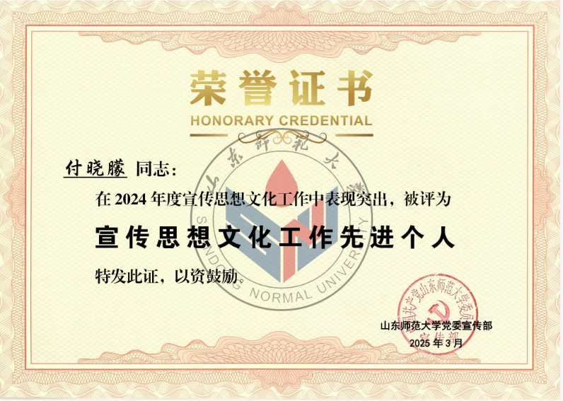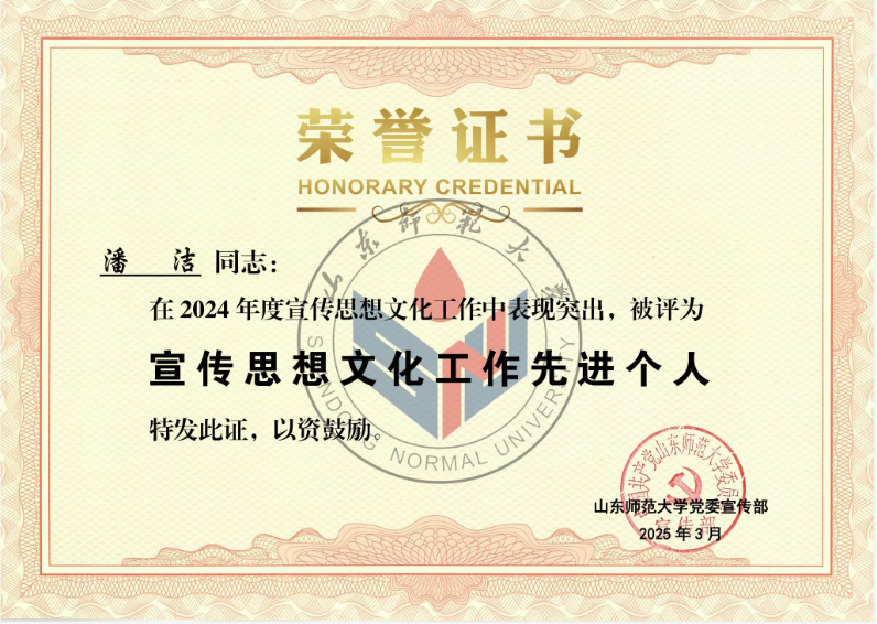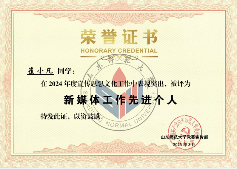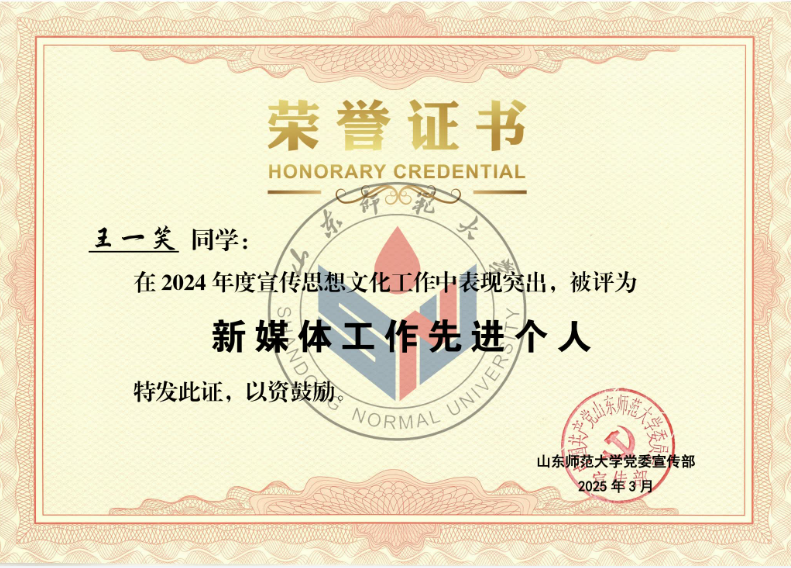 英国正版365首页在此次评选中获“2024年度优秀新媒体”称号,潘洁、付晓朦两位老师荣获“宣传思想文化工作先进个人”称号,王一笑、崔小凡两位同学荣获“新媒体工作先进个人”称号。