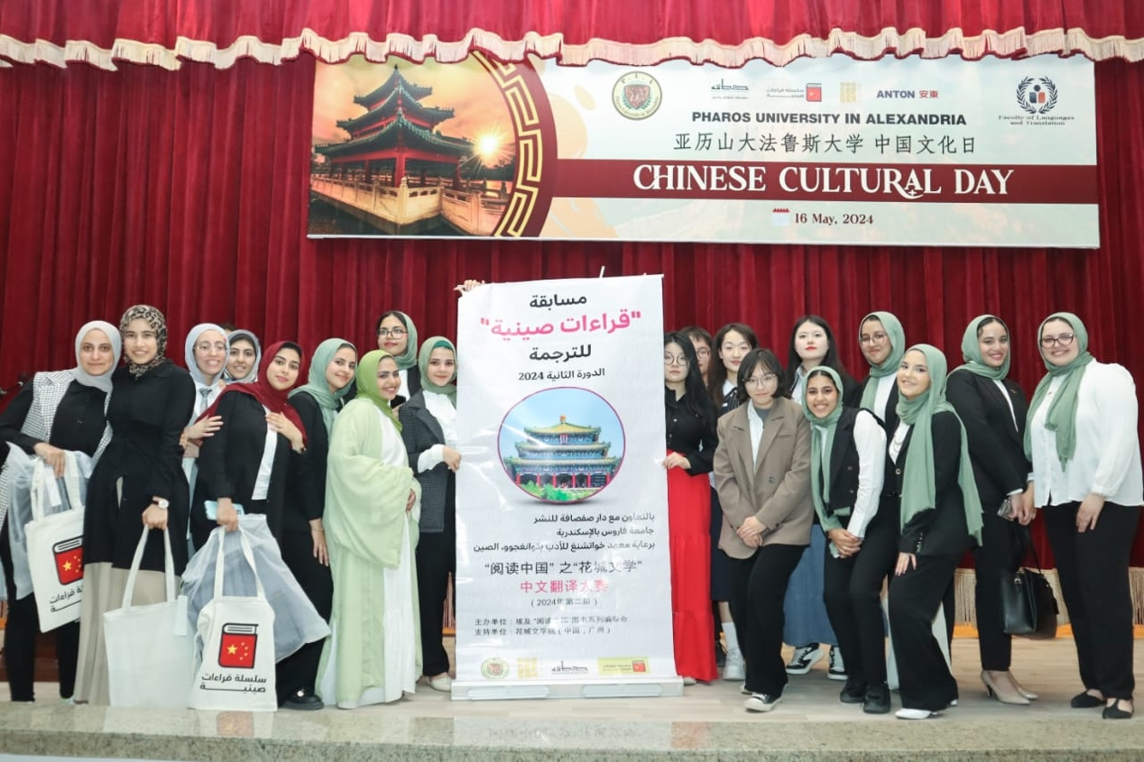 2024年5月16日,阿拉伯语专业五名交流生于埃及亚历山大法鲁斯大学与中文专业的埃及学生共同参与“中国文化日”活动