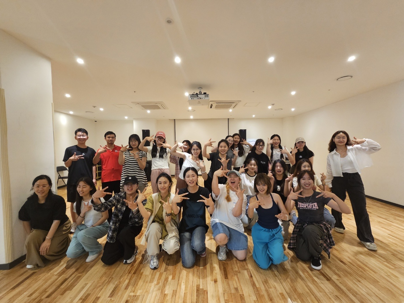 研修团学员在K-POP舞蹈训练室合影