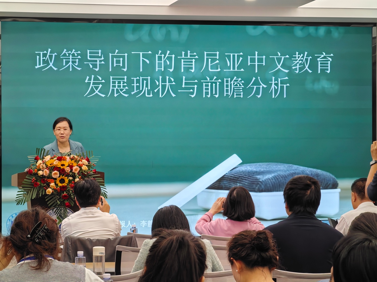 李静副教授在中文纳入非洲国家国民教育体系专题研讨会上作报告