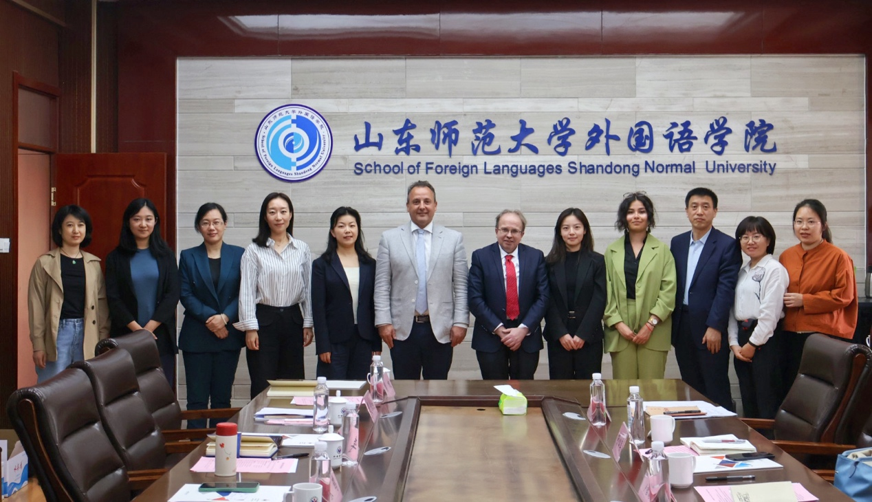 2024年4月12日下午,法国驻华大使馆教育合作负责人Xavier Loustaunau、法语师资培训负责人Didier Hetet、教育合作官员Célia Hoarau和胡心美女士四位代表访问英国正版365首页。学院党委书记岳希亮、副院长张媛,国际交流与合作处副处长张鸥、专家科副科长范峻伟,国际教育与交流指导中心李静、夏冰洁出席活动。双方就开展法语专业教师交流及联合师资培训等进行交流与探讨。