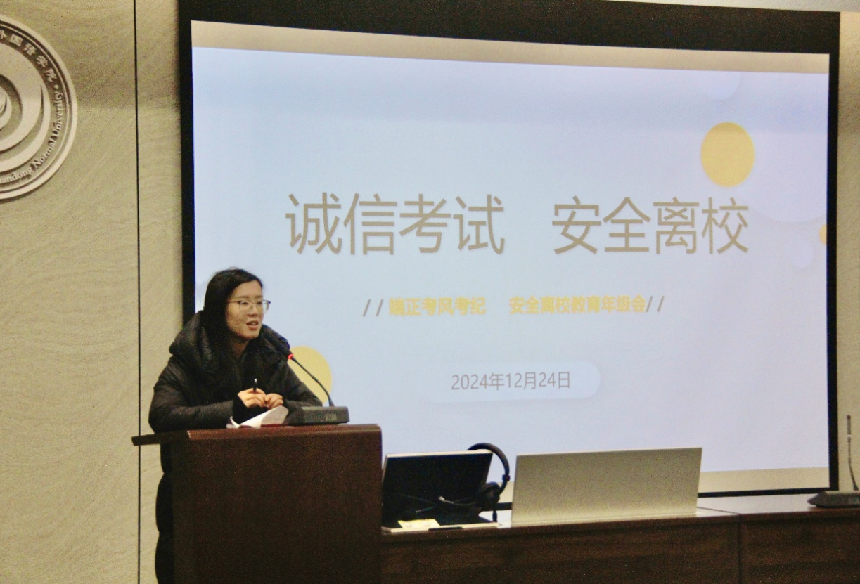 12月24日和12月25日,22级辅导员庄识氐和邱琳分别于B342教室和B242教室,为 22级小语种和英语班级召开诚信考试及寒假生活与安全主题年级会。此次年级会以“诚信考试及寒假生活与安全”为主题,旨在严肃考试纪律,树立优良学风,并强调寒假期间的安全问题和生活安排。本次会议从假期安排、假期任务、安全问题、诚信考试与生活健康五个方面展开,同时关心学生的复习情况和心理健康,为学生们即将到来的期末考试提供了全面支持和坚实保障。