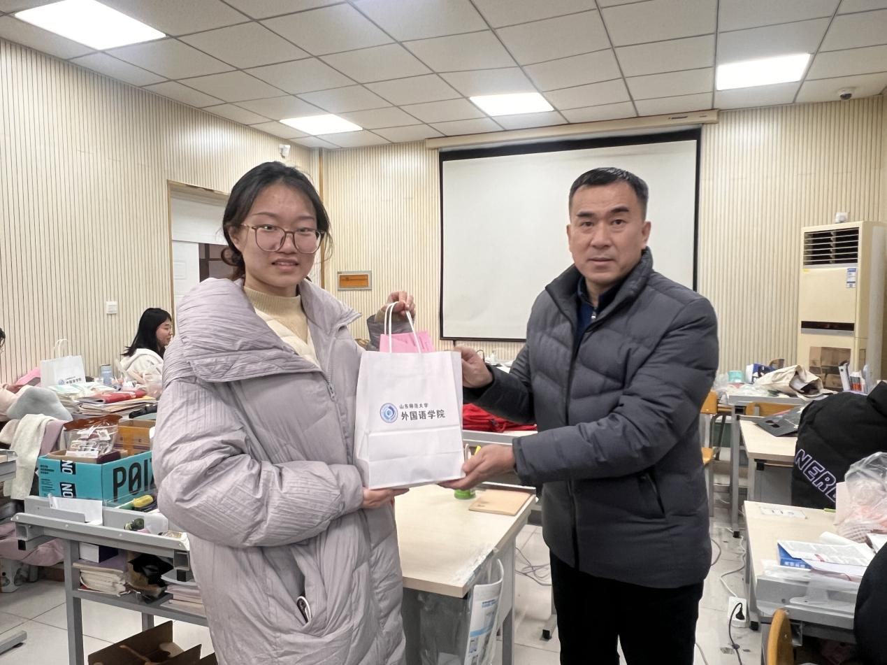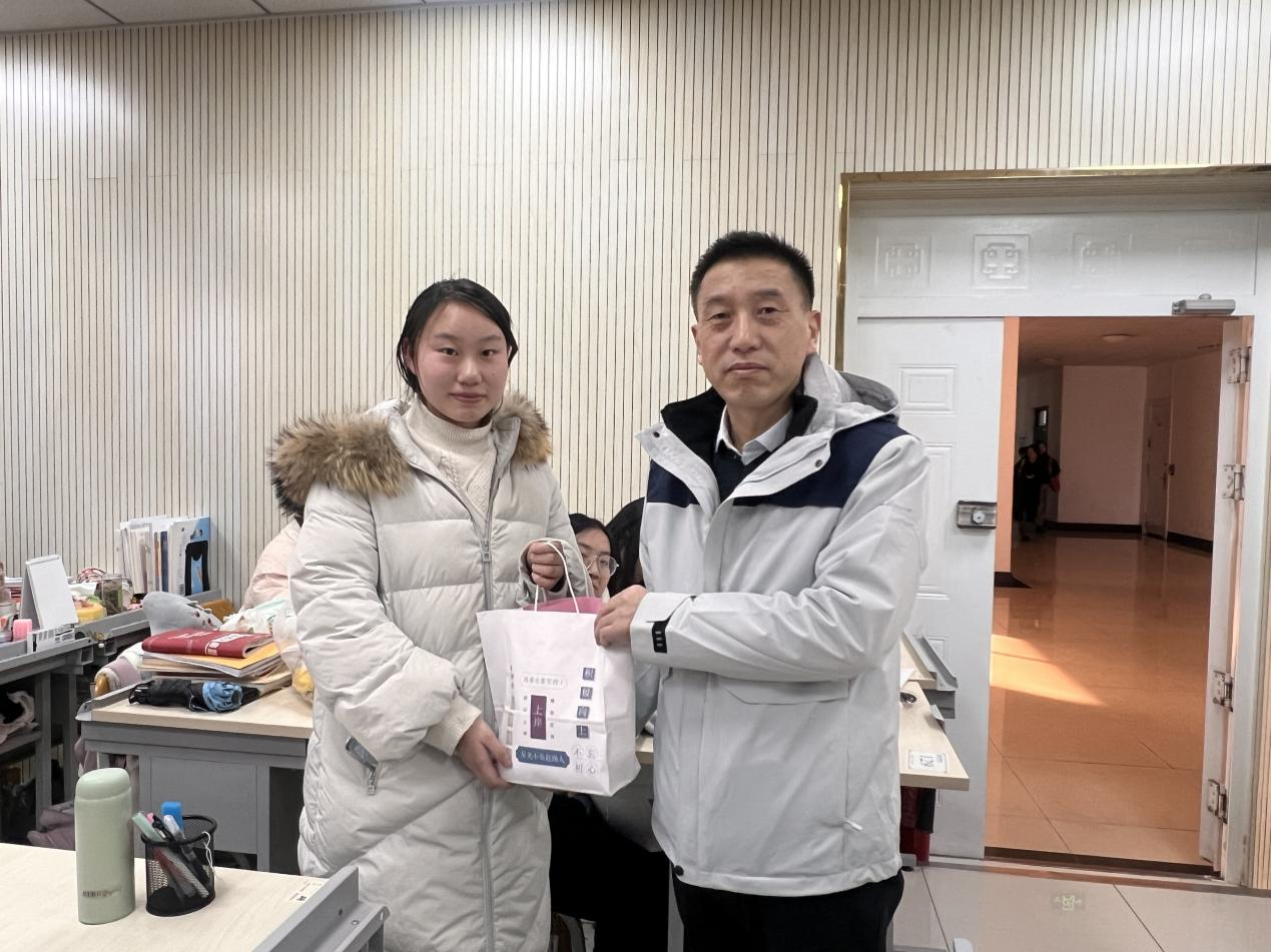 在慰问现场,领导与老师十分忙碌,他们亲手将一份份精心准备的“考研加油包”送到学子们手中。与考研学子们亲切交流,耐心倾听他们在备考过程中遇到的困难与压力,鼓励大家保持积极的心态,为他们舒缓压力,加油打气。