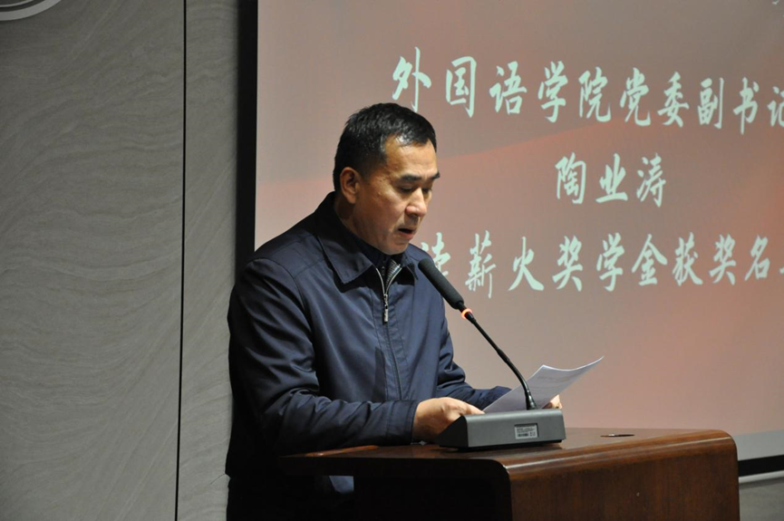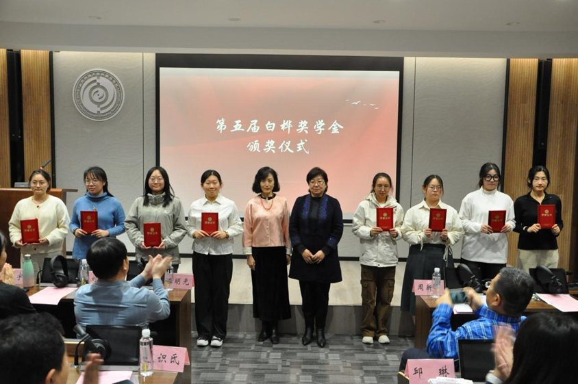 颁奖仪式伊始,付晓朦向大家介绍到场的嘉宾,并代表学院对他们的到来表示诚挚的感谢。随后,党委副书记陶业涛宣读薪火奖学金暨白桦奖学金获奖名单,参会嘉宾为获奖学生颁奖,对他们表示祝贺与鼓励。