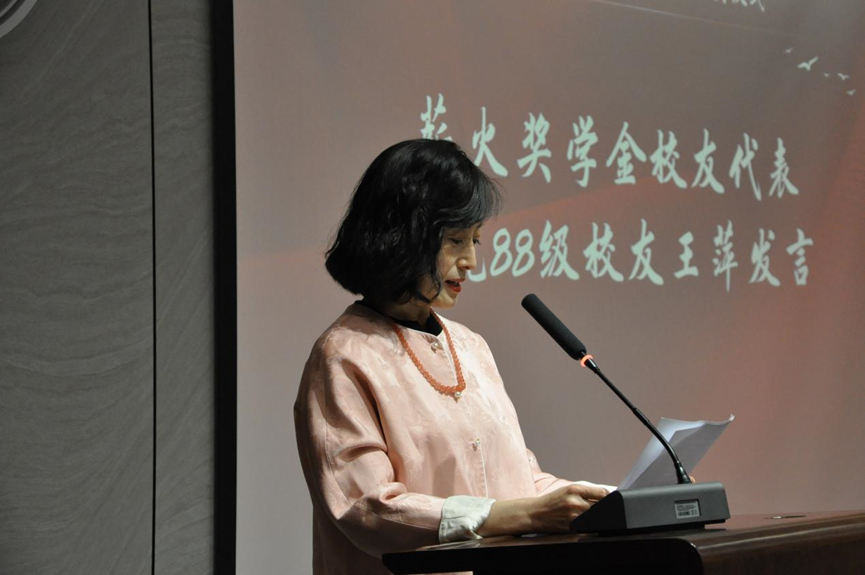 薪火奖学金校友代表王萍和白桦奖学金校友代表李毅萌依次发言。她们表示,再次回到母校,她们回忆起了自己炙热的青春,殷切嘱托同学们要珍惜大学时光,并表达了对英国正版365首页蓬勃发展的祝愿,祝福同学们前程似锦,旭日高升。现场嘉宾深受感动。