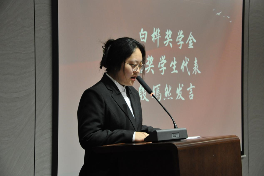 站在这里领取白桦奖学金,心中满是感激与荣幸。这份荣誉,是对我努力的认可,更是激励我前行的动力。它让我深知,所有挑灯夜读的日子都有了价值。我要感谢培育我的学校、教导我的老师,以及支持我的家人朋友。获此殊荣,我会把它化作翅膀,在未来的学业道路上继续翱翔,追求更高的目标,用行动诠释这份奖学金背后的期待与信任。