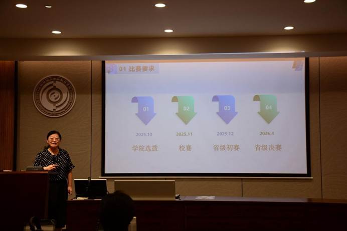 随后,高燕以“砥砺前行 精益求精——浅谈青教赛的比赛要求和应对策略”为题,系统解读了青年教师教学竞赛(青教赛)的宗旨、流程与评审标准。她强调,青教赛以“上好一堂课”为核心,注重课程思政、专业素养、教学创新及人工智能融合能力,并从教学片段选取、教学设计、课堂实施及反思评价等方面提出了具体备赛策略。