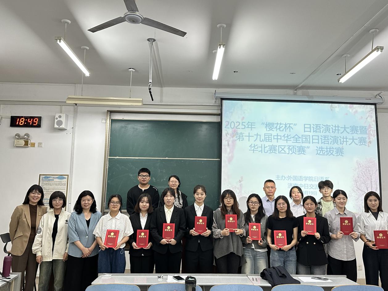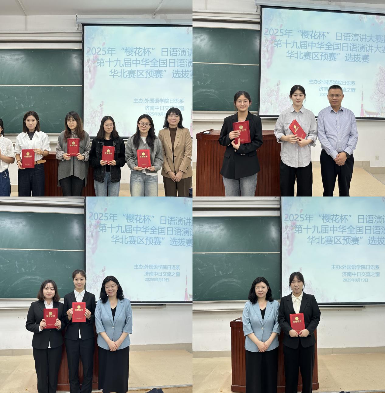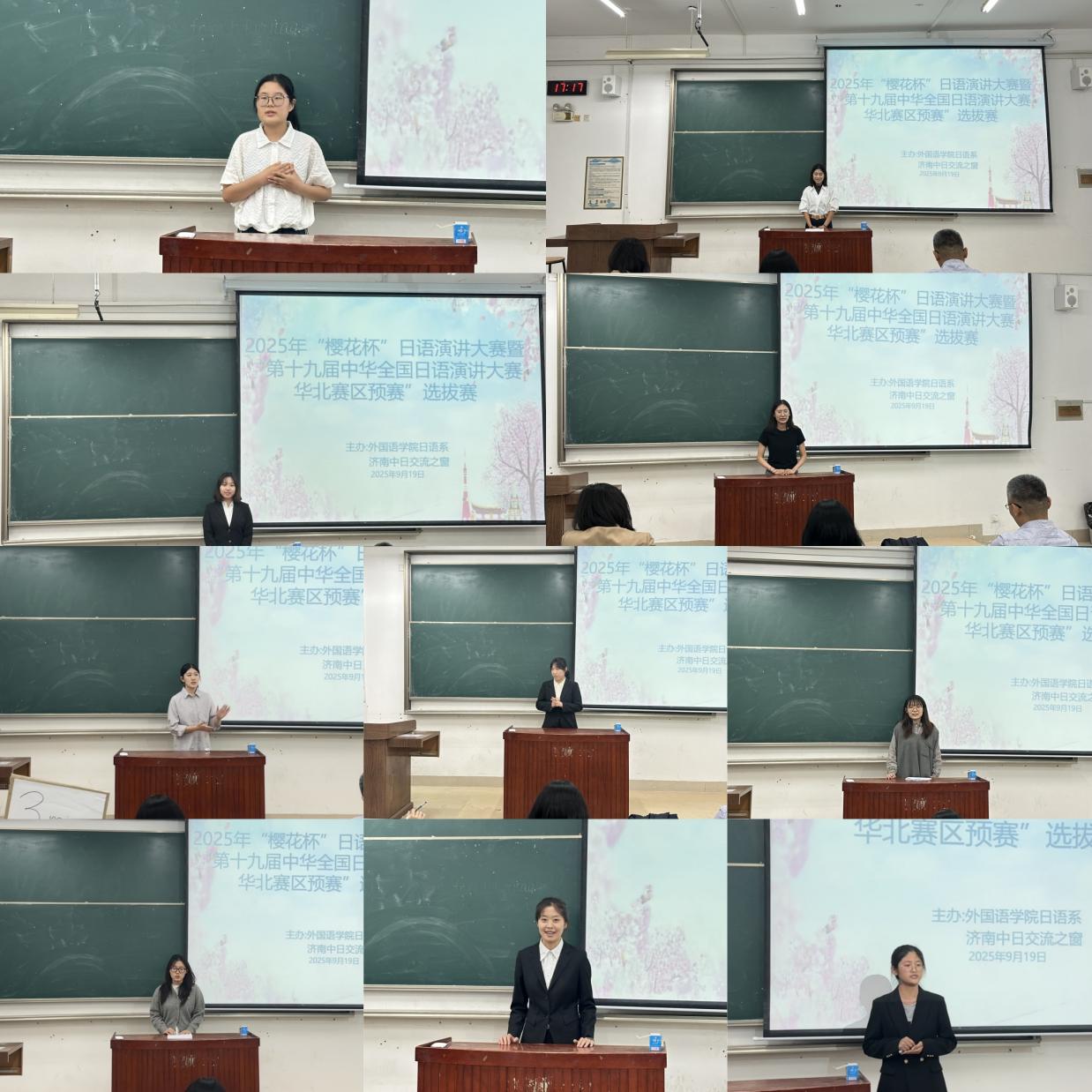 9月19日晚,由英国正版365首页日语系、济南中日交流之窗主办的2025年“樱花杯”日语演讲大赛暨“第十九届中华全国日语演讲大赛华北赛区预赛”选拔赛在文渊楼B区226教室成功举办。本次大赛由日语系2023级学生沈瑞霖同学主持,日语系主任崔颖副教授、副主任孙守峰教授、田嫄副教授担任评委。日语系2022级、2023级、2024级同学在现场观看了比赛。