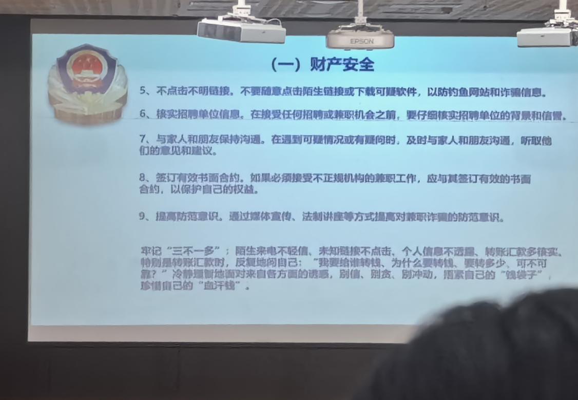 讲座最后,刘超总结了所有提到的案件,他强调校园安全是一个需要时刻紧绷的弦,绝不能有丝毫懈怠。每一个案例都是给同学们的警醒,要把今天学到的这些知识真正地融入到日常行为当中去。无论是在校园里的学习生活,还是走出校园融入社会,都要养成良好的安全习惯,让这些安全知识成为保护自己的有力武器。而他也会为同学们的校园安全保驾护航,助力同学们的茁壮成长。
