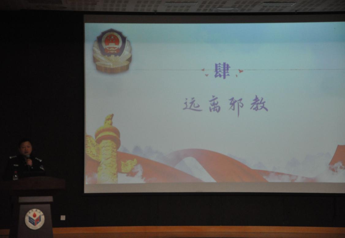 讲座的最后部分,在宗教信仰安全方面,刘超阐述宗教信仰自由与邪教的区别,教育学生远离邪教组织。他分享了邪教组织危害案例,提醒学生不要参与非法宗教活动。刘超强调,同学们要提高自身的防范意识和辨别能力。在面对各种纷繁复杂的信息和诱惑时,同学们要保持清醒的头脑,不随意接受宗教宣传。自觉遵守国家法律法规和学校规章制度,坚决抵制非法宗教渗透,努力学习科学文化知识,以实际行动维护校园的和谐稳定,为共创美好明天奠定坚实的思想基础。