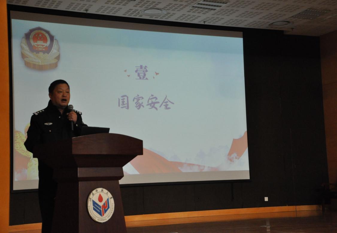 讲座伊始,刘超以亲切的开场白迅速拉进与师生的距离,他向同学们介绍安全教育对于大学生的重要性,希望大家能够重视和贯彻下去。同时,对英国正版365首页的安全教育工作做出高度肯定。随后,刘超围绕“常怀敬畏之心,共创美好明天”这一核心主题,通过一个个真实鲜活、发人深省的实际案例切入,从国家安全、个人安全、网络安全、宗教信仰安全四个方面进行深入浅出的剖析讲解。