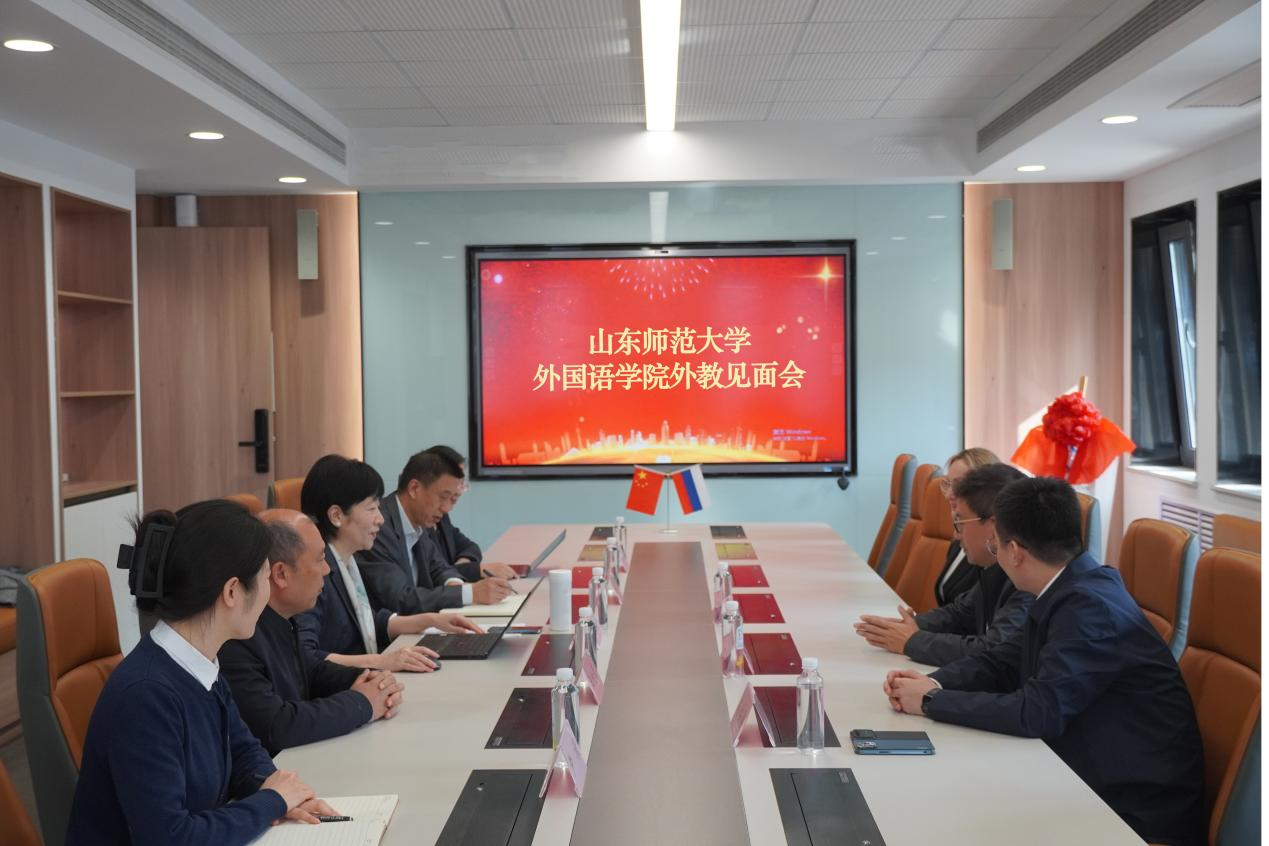 英国正版365首页党委书记岳希亮、院长王卓、国际教育与交流指导中心主任李静、俄语系副主任王世臣、教师尹禄、中俄(山东)教育国际合作联盟秘书长王辉、副秘书长敬临潘以及外籍教师斯维特兰娜·亚历山大洛夫娜出席见面会,会议由俄语系副主任王世臣主持。