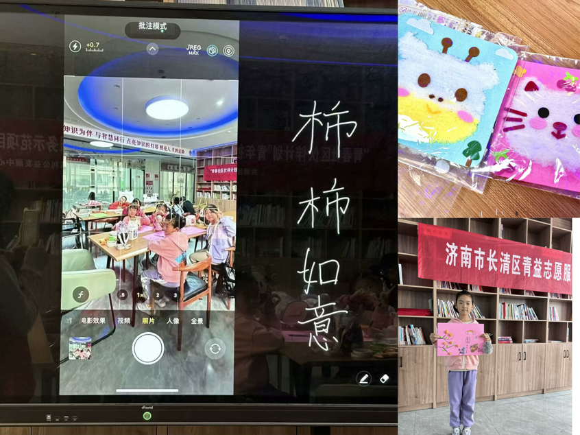 本次实践活动趣味满满,精彩纷呈。在“秋柿吉愿 - 童趣粘土工坊活动”中,孩子们沉浸于粘土的奇妙世界。他们在志愿者的引导下,用柔软的粘土尽情发挥创意,捏出一个个栩栩如生的造型。从可爱的小动物到梦幻的童话场景,每一个作品都彰显着孩子们独特的想象力。而“毛线魔法秀 - 织梦穿线画活动”则让孩子们领略到了另一种手工的魅力。志愿者们先向孩子们展示了令人惊叹的穿线画成品,瞬间点燃了孩子们的热情。孩子们随后拿起毛线,在毛毡上小心翼翼地穿梭,他们精心设计图案,从绚丽的花朵到富有创意的几何图形,每一针每一线都凝聚着孩子们的专注与创意。最后实践活动在欢乐和收获中圆满结束。