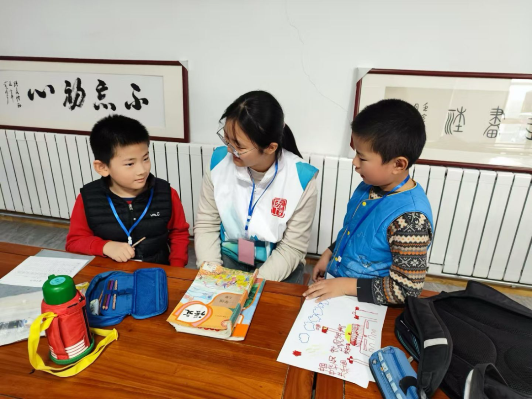 在上课期间,队员们用生动有趣的语言引导孩子们阅读英语绘本。他们通过角色扮演、情景模拟等方式,让孩子们沉浸在故事中,感受情节的起伏和角色的情感变化。孩子们积极参与互动,踊跃发言,现场气氛热烈而欢快。这些内容不仅让孩子们开拓了国际视野,也让他们对异国文化产生了浓厚的兴趣。