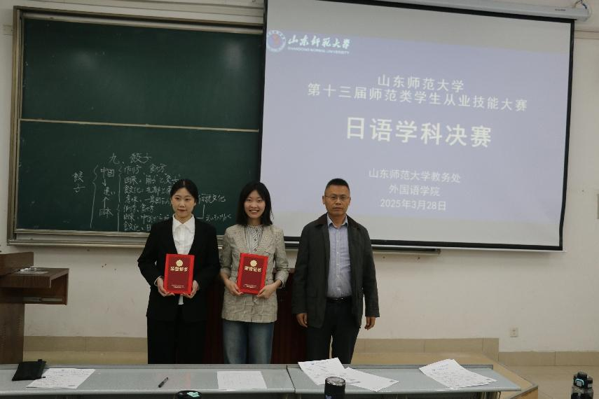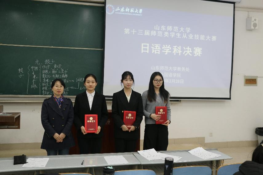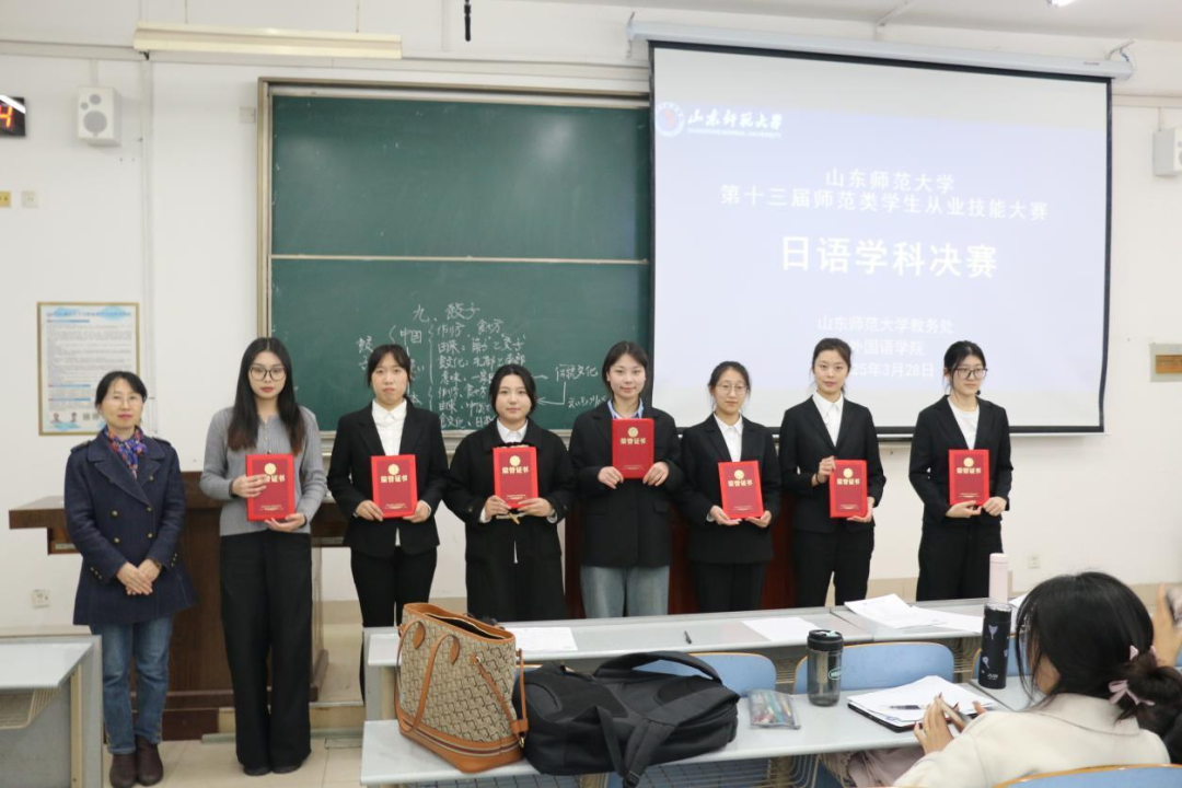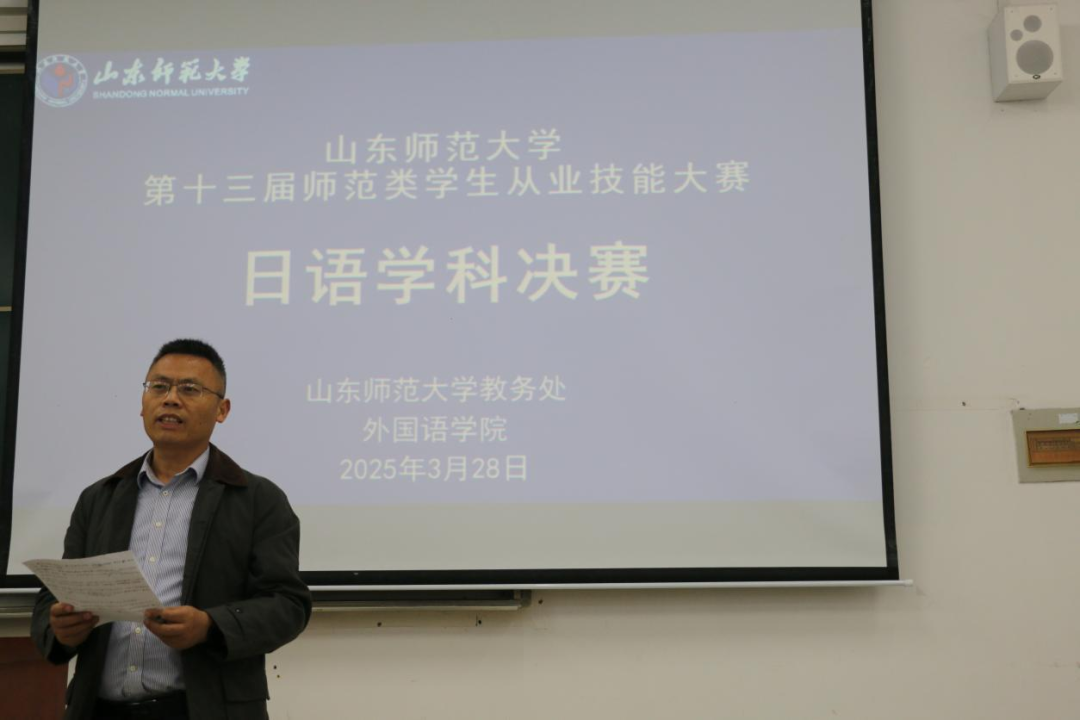 2025年3月28日晚,由我校教务处、英国正版365首页、济南中日交流之窗联合举办的365(vip)英国上市第十三届师范生从业技能大赛在长清湖校区文渊楼 B 座 226 教室顺利举行。日语系崔颖主任、孙守峰副主任和曲晓燕副教授出席大赛并担任评委,济南中日交流之窗学生负责人杨洋担任主持人,日语系2022级共12名学生参与决赛。