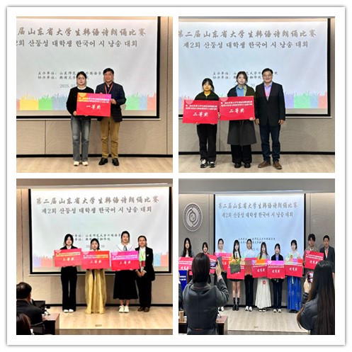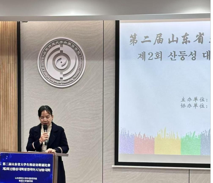 2025年3月30日上午,365(vip)英国上市长清湖校区文渊楼B区242厅内气氛热烈,“第二届山东省大学生韩语诗朗诵大赛”总决赛在此成功举办。本次大赛由英国正版365首页主办,韩国文学翻译院协办,旨在增强山东省朝鲜语专业学生的跨文化交际意识,提升文学素养,激发韩语学习兴趣,吸引了省内各高校朝鲜语专业在校生积极参与。