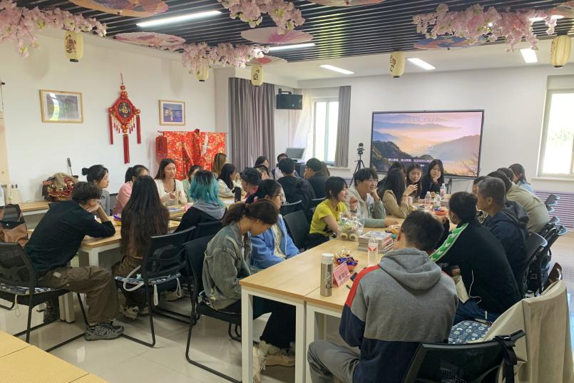 活动伊始,杨洋同学依次介绍了各位与会来宾及本次活动的大致流程。正式开始后,向舒琴同学首先介绍了此次在日本研修活动的日常学习生活,对比了一些细节中的中日文化异同;接下来向舒琴同学介绍了赴日过程中在东京、大阪以及京都等地参观过的日本名胜古迹,分享了在日研修期间的旅行见闻,讲述了研修过程中发生的有趣经历,如和服、茶道体验等,她还展示了在日研修过程中拍摄的东京景象、国立博物馆等照片。最后,她与大家分享了她对日本短期研修的总结和思考,并对国际交流基金会的邀请表达了感谢。 在互动环节,各位同学围绕向舒琴同学分享中感兴趣的方面展开讨论和提问,详细询问了向舒琴同学赴日的见闻和感受,如中日拉面味道有何不同、日本的便利店是怎样的以及和服有没有什么不方便的地方等问题,向舒琴同学均一一解答,同学积极提问,活动现场气氛热烈。