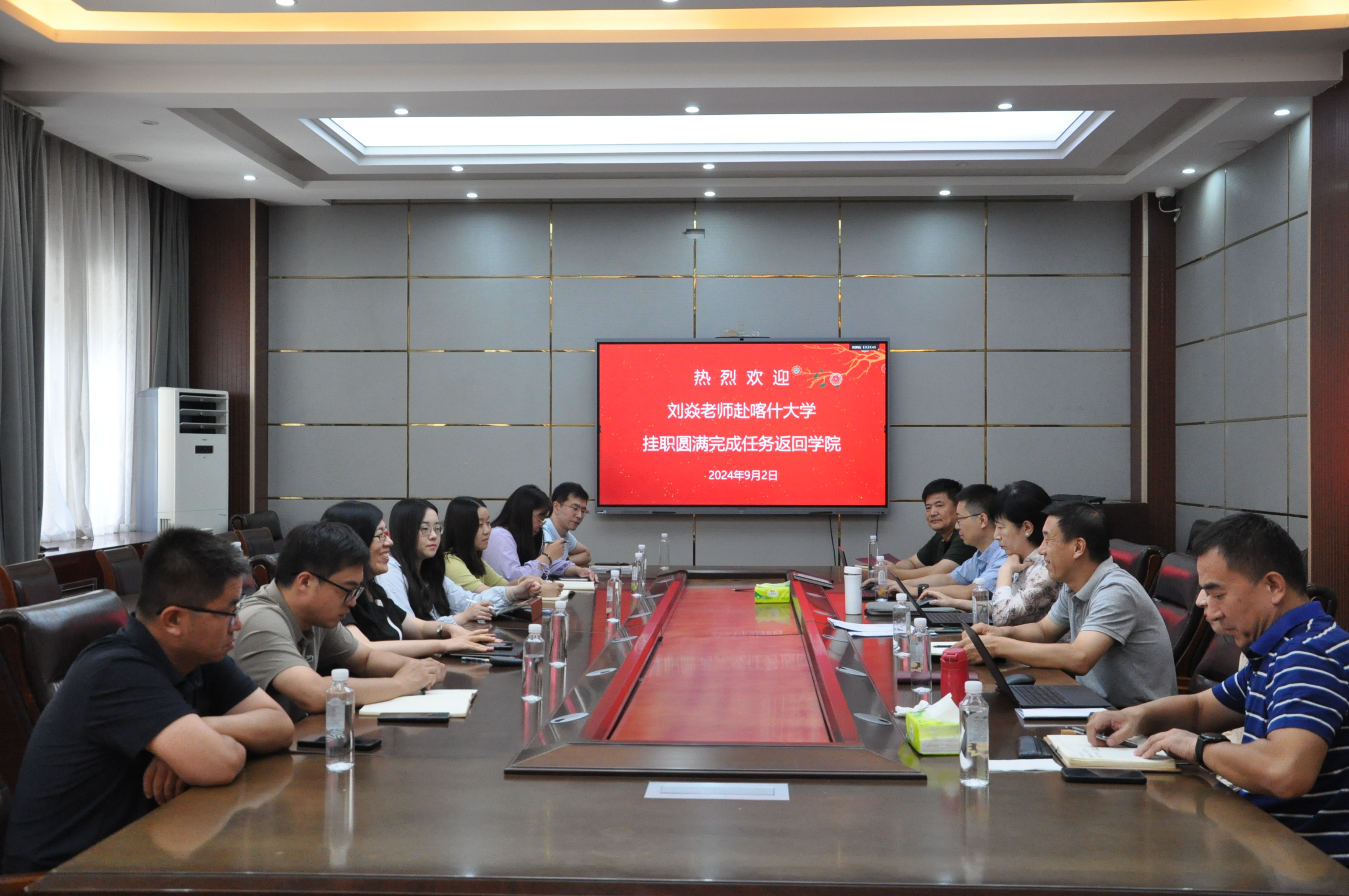 学院领导首先代表学院热烈欢迎刘焱老师的回归,对她圆满完成挂职锻炼任务并为学校、学院争得荣誉给予充分肯定。同时指出,刘焱老师克服各方面困难援疆期间磨练了意志,锤炼了作风,开阔了眼界,增长了才干,提升了工作能力,是一笔宝贵的经验积累和人生财富。希望刘老师把挂职期间学到的知识和经验运用到今后的工作中,继续发扬艰苦奋斗的精神,为学院的高质量发展贡献力量。