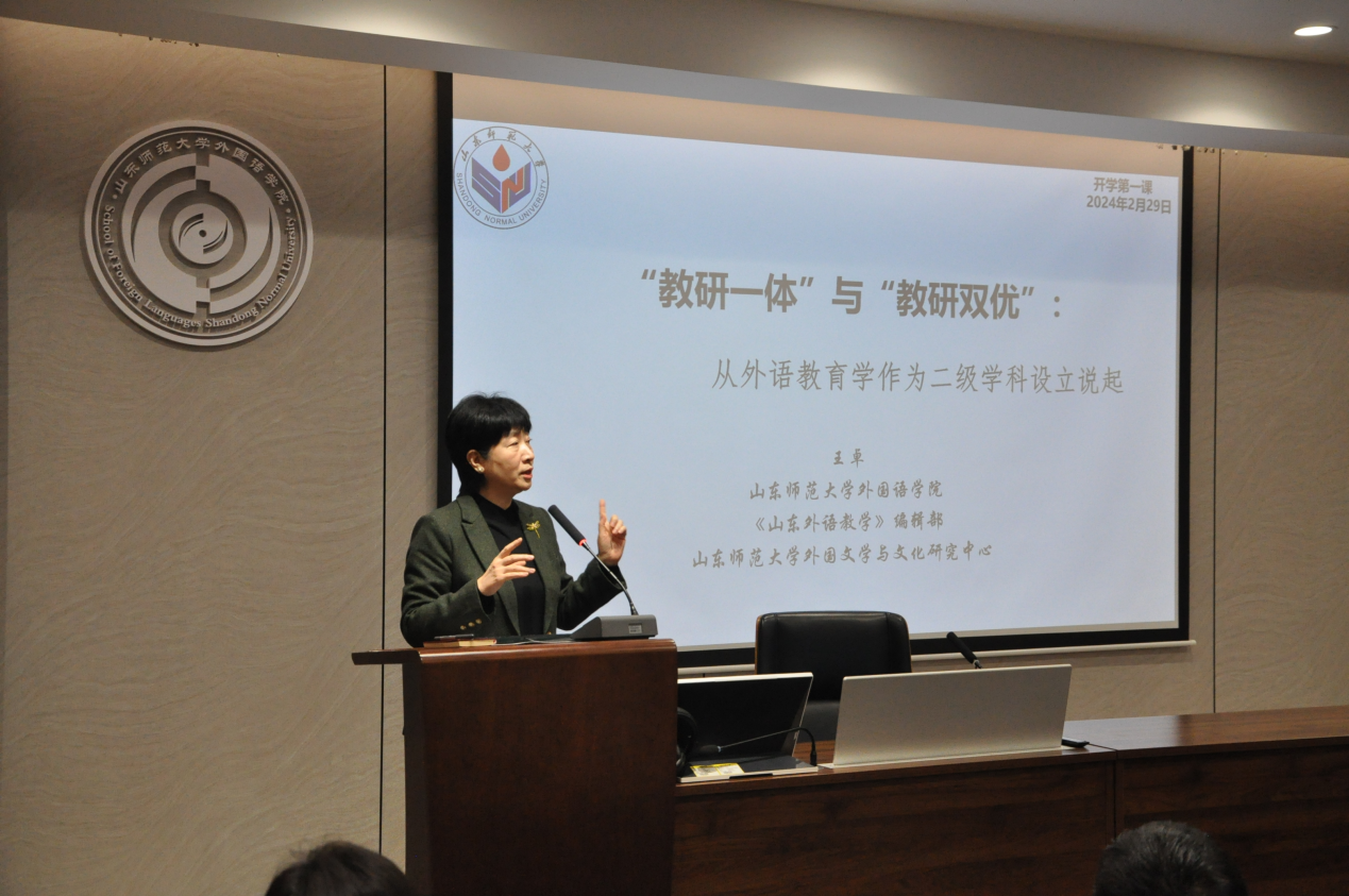 新学期,英国正版365首页教师教学发展分中心在学校“一院一品”活动下推出“语师同行”系列活动。2月29日,王卓院长首先开讲,主题是“教研一体与教研双优”。