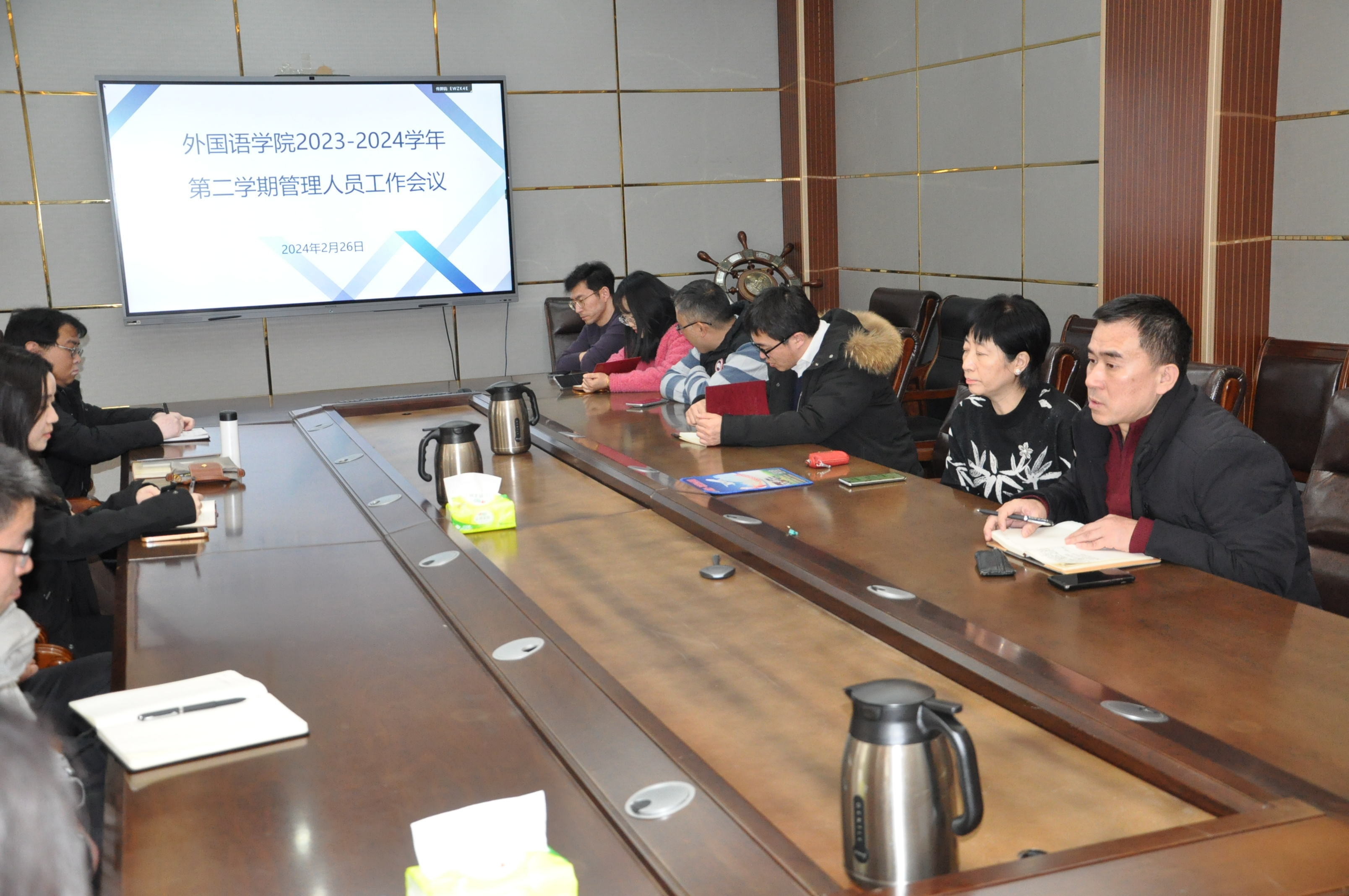 2月26日下午,英国正版365首页在313会议室召开新学期管理人员会议。学院党委书记岳希亮、院长王卓、党委副书记陶业涛及全体行政人员、辅导员参加会议。会议由陶业涛副书记主持。