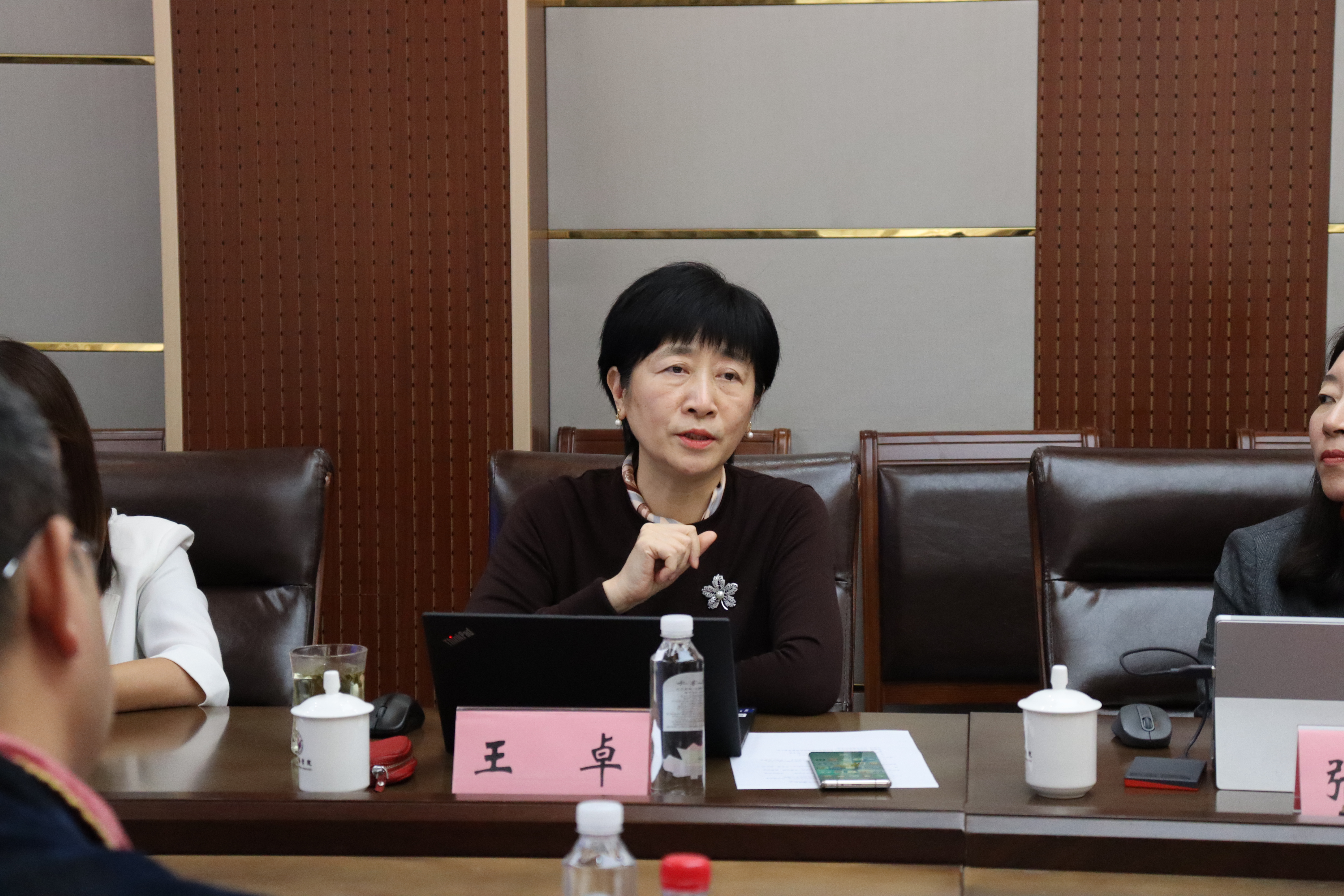 会上,王卓首先对申丽一行人的到来表示热烈欢迎,随后介绍了大学外语课程改革的整体体系,包括课程模式、教材选用、课程体系以及评价方式。王卓着重指出了跨学科大外语的人才培养模式,介绍了该模式的产生过程、改革重点以及成果和意义。