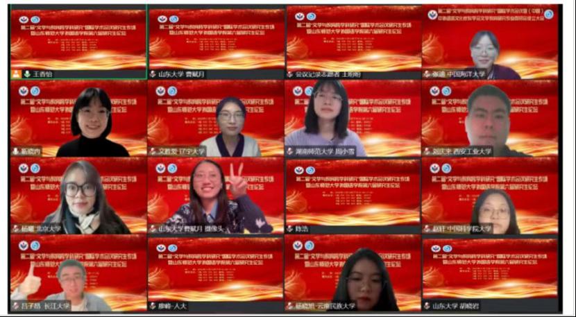 11月12日,英国正版365首页第六届研究生论坛在我院成功举办。在此次论坛中,来自北京大学、南京大学、中国人民大学、中国科学院大学、山东大学、北京外国语大学、上海外国语大学、西北工业大学、中国海洋大学、贵州大学等全国高校的研究生60余人齐聚云端,分享了自己的学术研究成果。