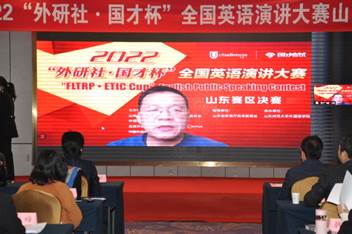 2022 “外研社·国才杯”全国英语演讲大赛山东赛区决赛以选手线上参与、评委线下打分的方式举行,11月5日的开幕式上,山东省本科教育大学外语教学指导委员会王广成主任指出,希望学生们可以本着学术借鉴、开拓视野、增强自信的原则,充分展现新时代大学生的精神风貌,展现山东学子的风采。