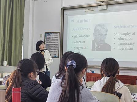 本次教学展示的主讲教师为英语专业青年教师靳晓冉博士,其主讲课程《综合英语3》重视文本阅读能力的拓展,帮助学生夯实语言技能的同时,注重提升学生的综合素养。靳老师的授课紧扣该单元“教育”这一主题,结合丰富的背景知识进行新课知识讲授,内容充实,师生互动活跃,较好地完成了预设教学目标。