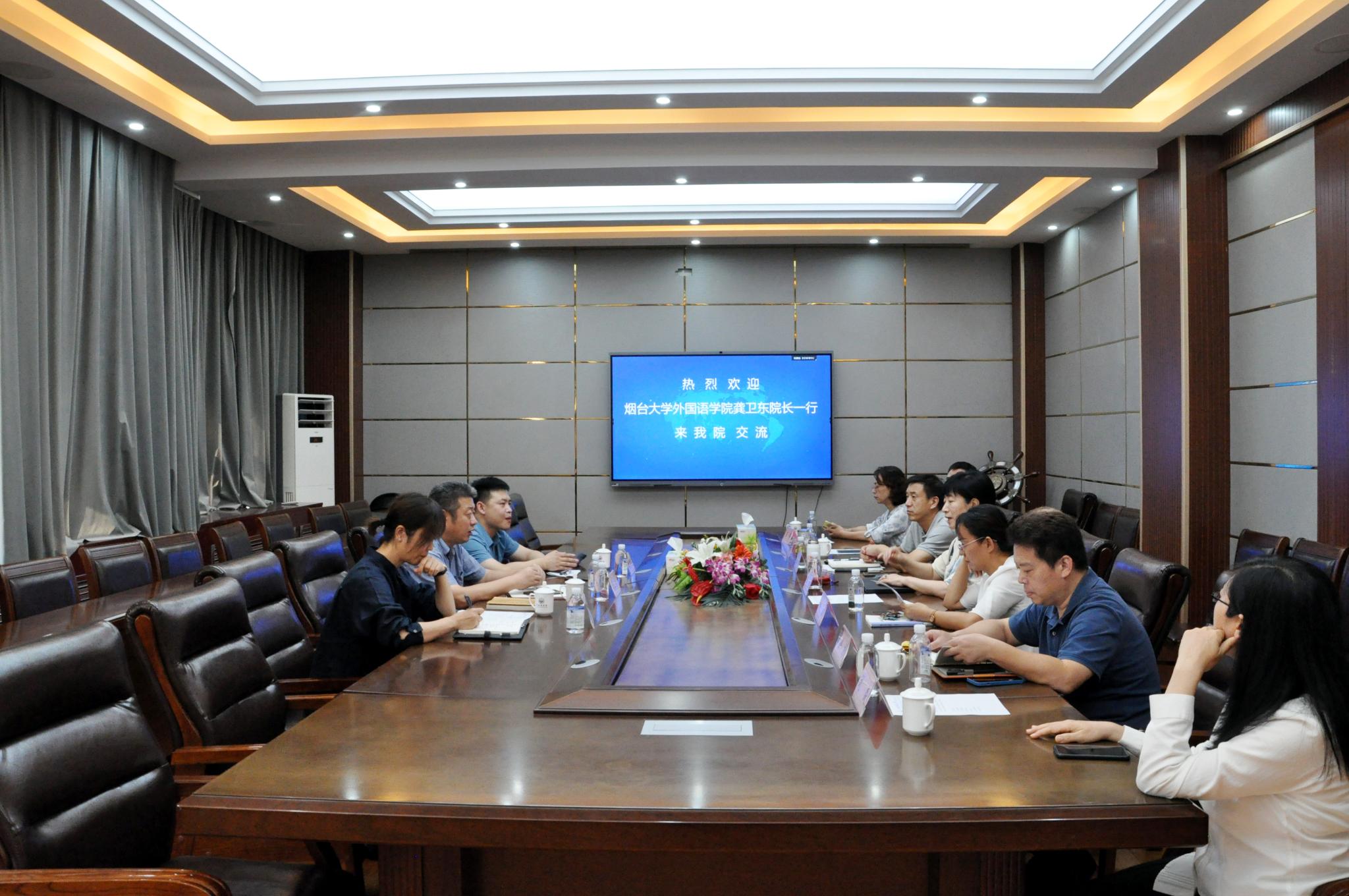 2022年9月30日,烟台大学英国正版365首页院长龚卫东、副院长裴书峰、英语系主任李晓晖一行三人来我院专题调研一流专业建设、一流课程建设、实习实践基地建设、研究生联合培养、英语学科竞赛等工作。学院党委书记岳希亮、院长王卓、副院长葛云锋、MTI中心主任徐彬、英语系副主任、师范生教学技能培养工作坊负责人王锦、韩语系主任钟洁、英语竞赛中心副主任刘焱等参加了此次会谈。会谈由王卓院长主持。