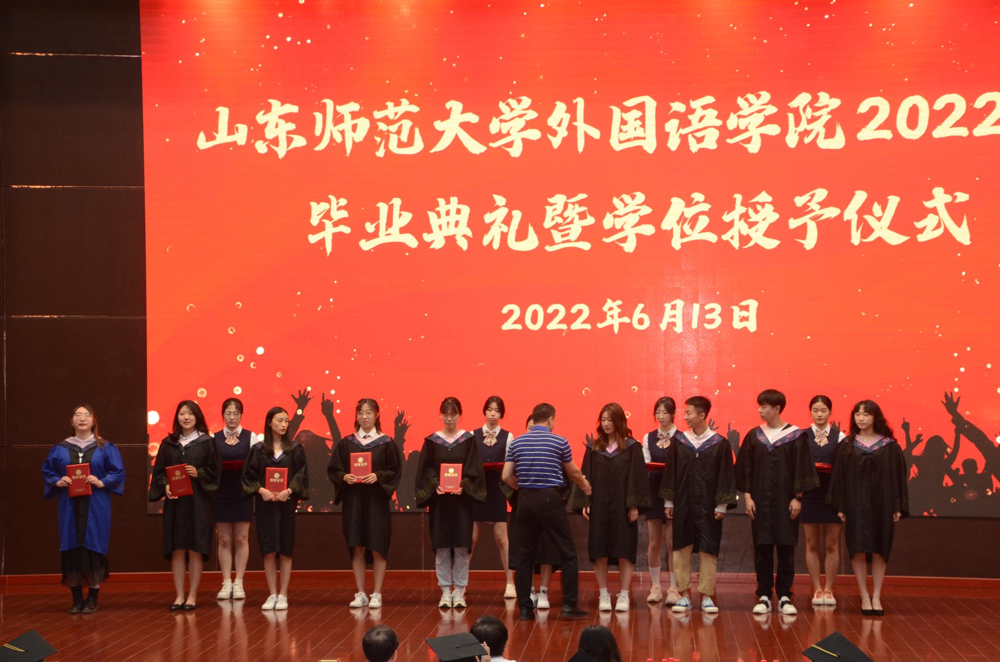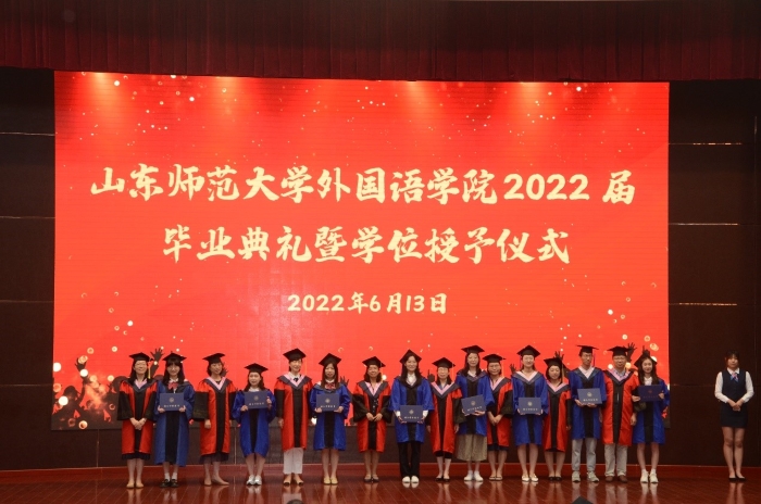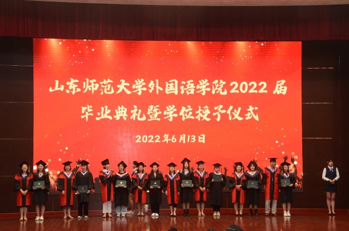 典礼正式开始前展示了由英国正版365首页2022届毕业生策划出演的毕业主题mv《闪耀》,mv里记录了他们在山师学习与生活的点滴回忆,随着影片的播放,在山师外院度过的美好时光一幕幕浮现在脑海,时光流逝,但记忆会永镌脑海。