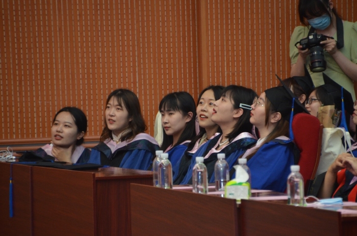 来自2019级俄语语言文学专业的西茹静代表2022届全体研究生毕业生分享了自己在外院三年时光的体会与感受。首先,她表达了对栽培自己的老师们的感谢。她分享了自己研究生三年时光的学习、研究历程,尤其是在疫情期间自己的特殊感受;沧海横流,方显英雄本色,她勉励大家发挥外语系学生的优势,做好为中外交流牵线搭桥的使者,无愧于外院的培养,做新时代乘风破浪的新青年。