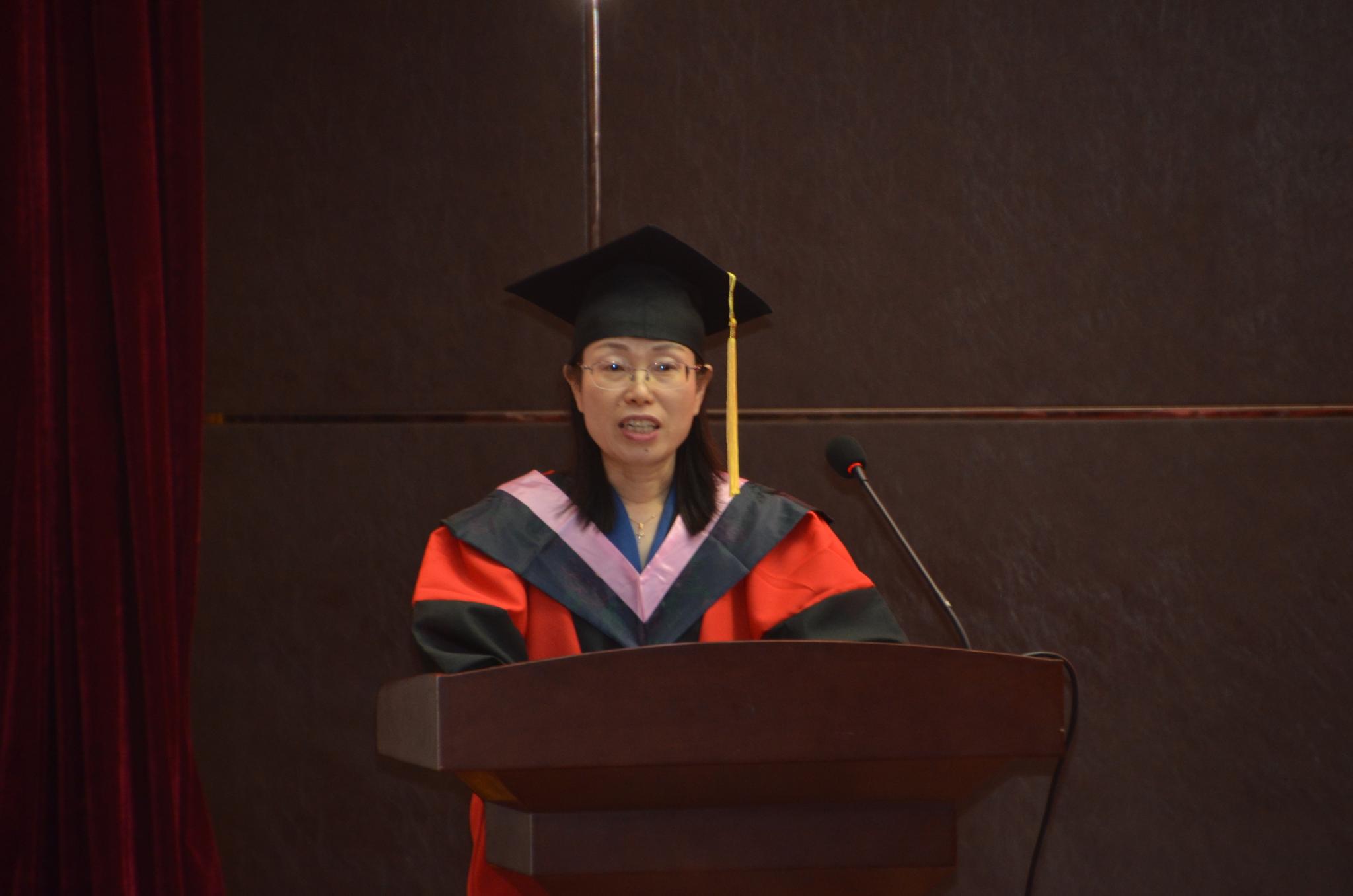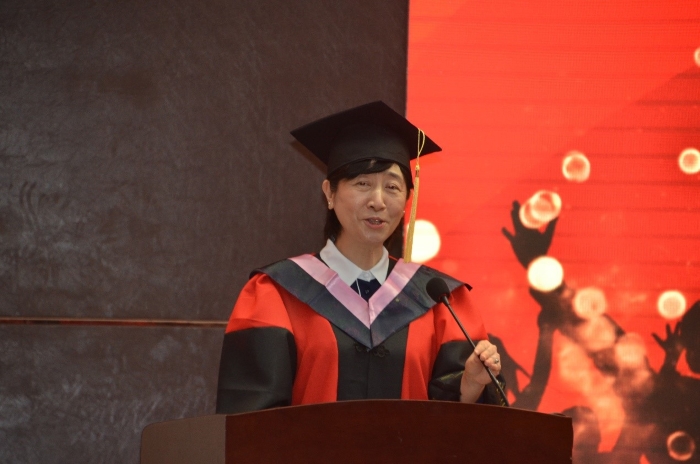 院长王卓向2022届全体毕业生致辞。她指出,在过去的几年中,英国正版365首页取得了令人喜悦的优异成绩,这与在座师生的努力和贡献密不可分,更为外院的毕业生们提供了更加坚强的后盾;回顾在校的学习与生活,师生一同经历了疫情的变故,也见证了自我的成长,她希望同学们能够继续勇敢地面对不同生活带来的挑战,面对未知的前方做最勇敢的自己;身处这个蓬勃发展的时代,同学们应当心怀感恩,不负韶光,担当起这一代人的时代责任。