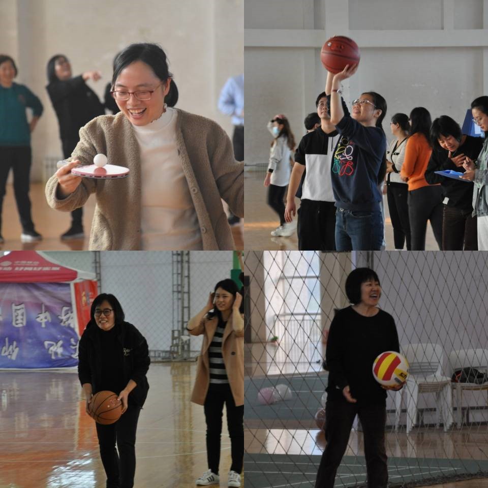 随后的踢毽子和跳绳比赛中,老师们脚上脚下飞速起落,上下翻飞,展现出无限热情与活力,最终宋嘉靖老师和陈琳琳老师分别夺得两项比赛的冠军。